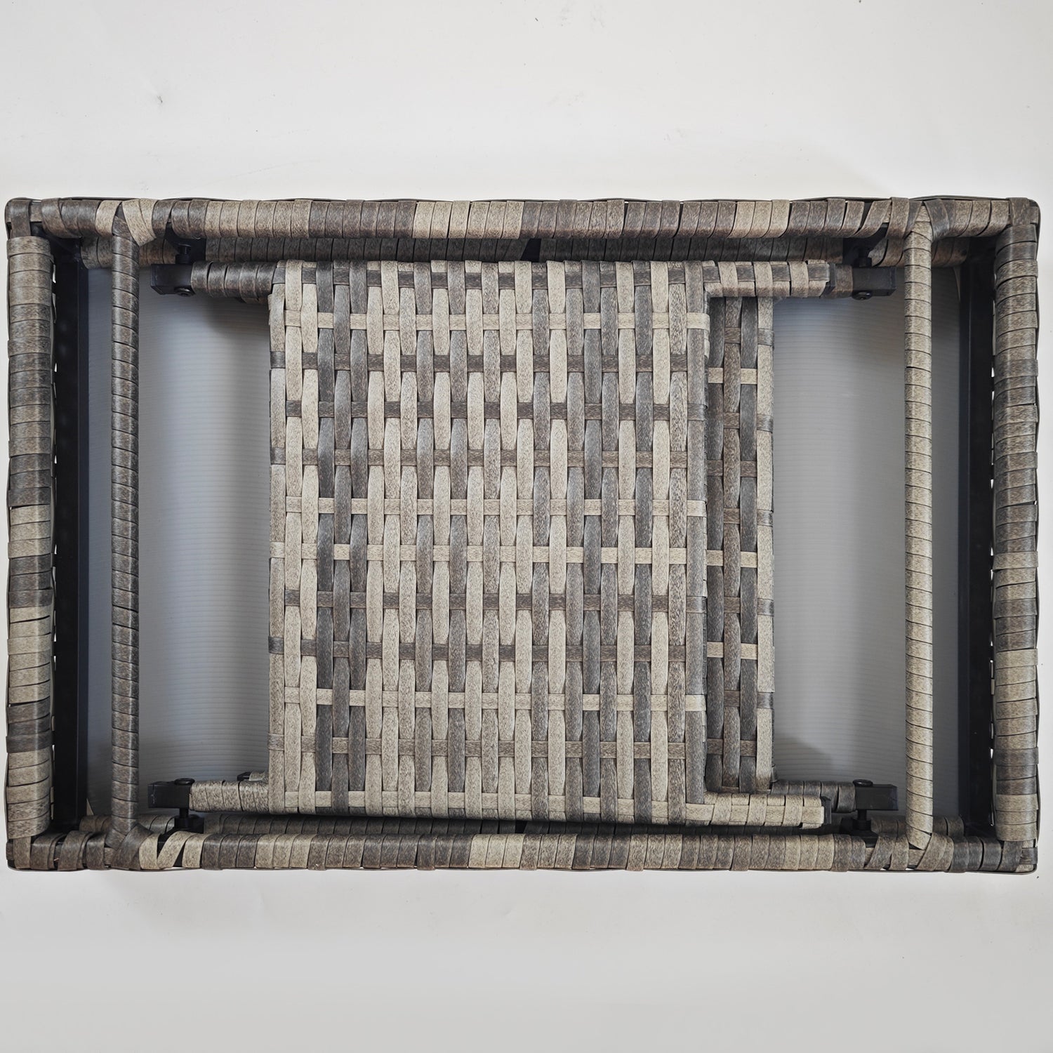 Outsunny Foldable Outdoor Coffee Table, Metal Frame Rattan Side Table, Coffee Table Side Table for Lawn, Garden, Mixed Grey