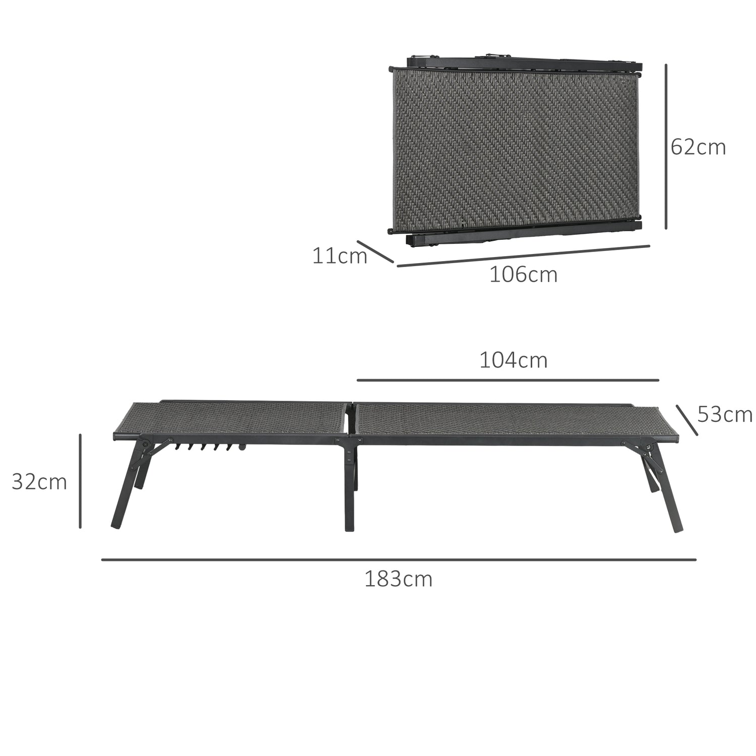 - Folded Dimensions: 106L x 62W x 11H cm