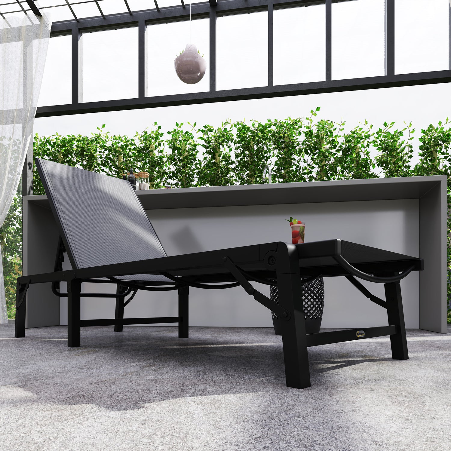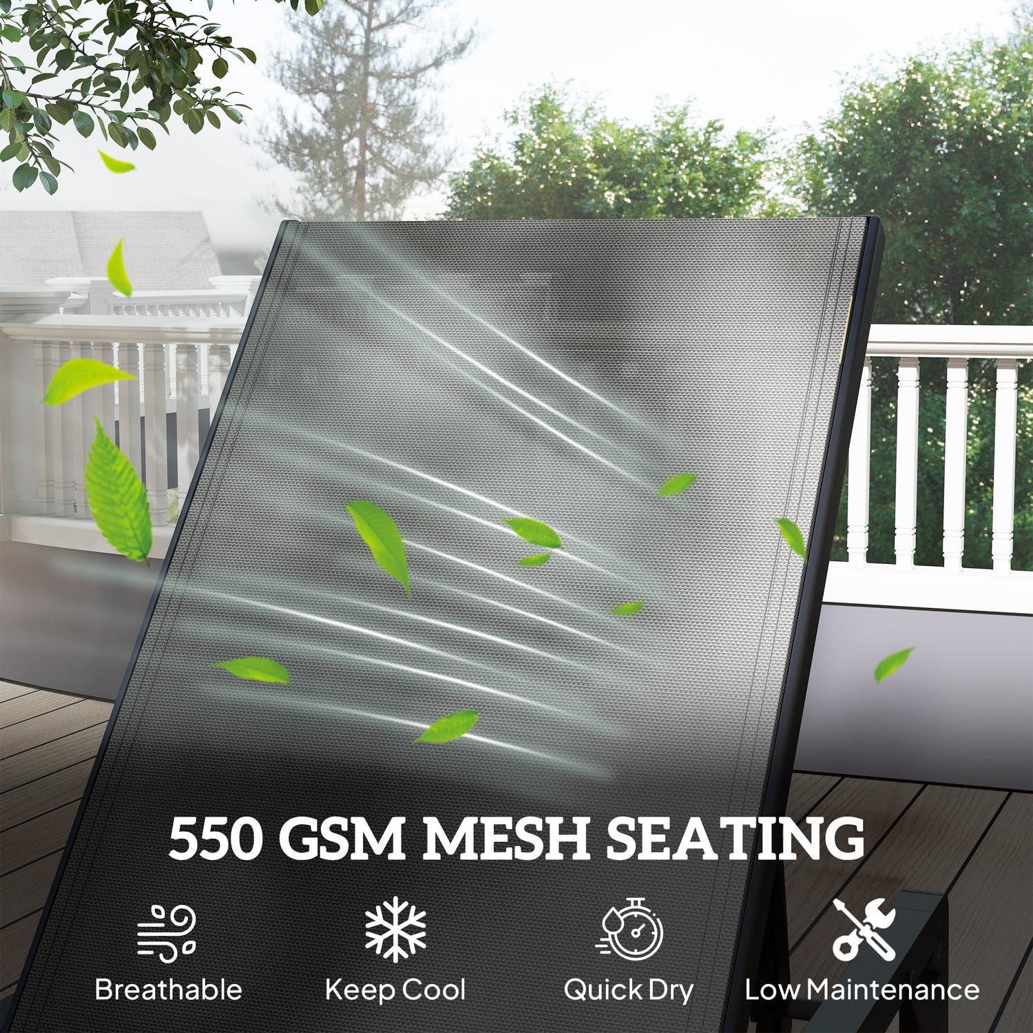Relax and soak up the sun in style with the Outsunny Reclining Sun Lounger! Adjust the backrest through five levels, up to a flat 180 degrees, ensuring peak relaxation. Crafted from breathable, quick-drying Texteline mesh, this garden recliner keeps you cool and dry no matter the weather. Plus, its lightweight design makes it a breeze to move and store, enhancing any outdoor lounge area.