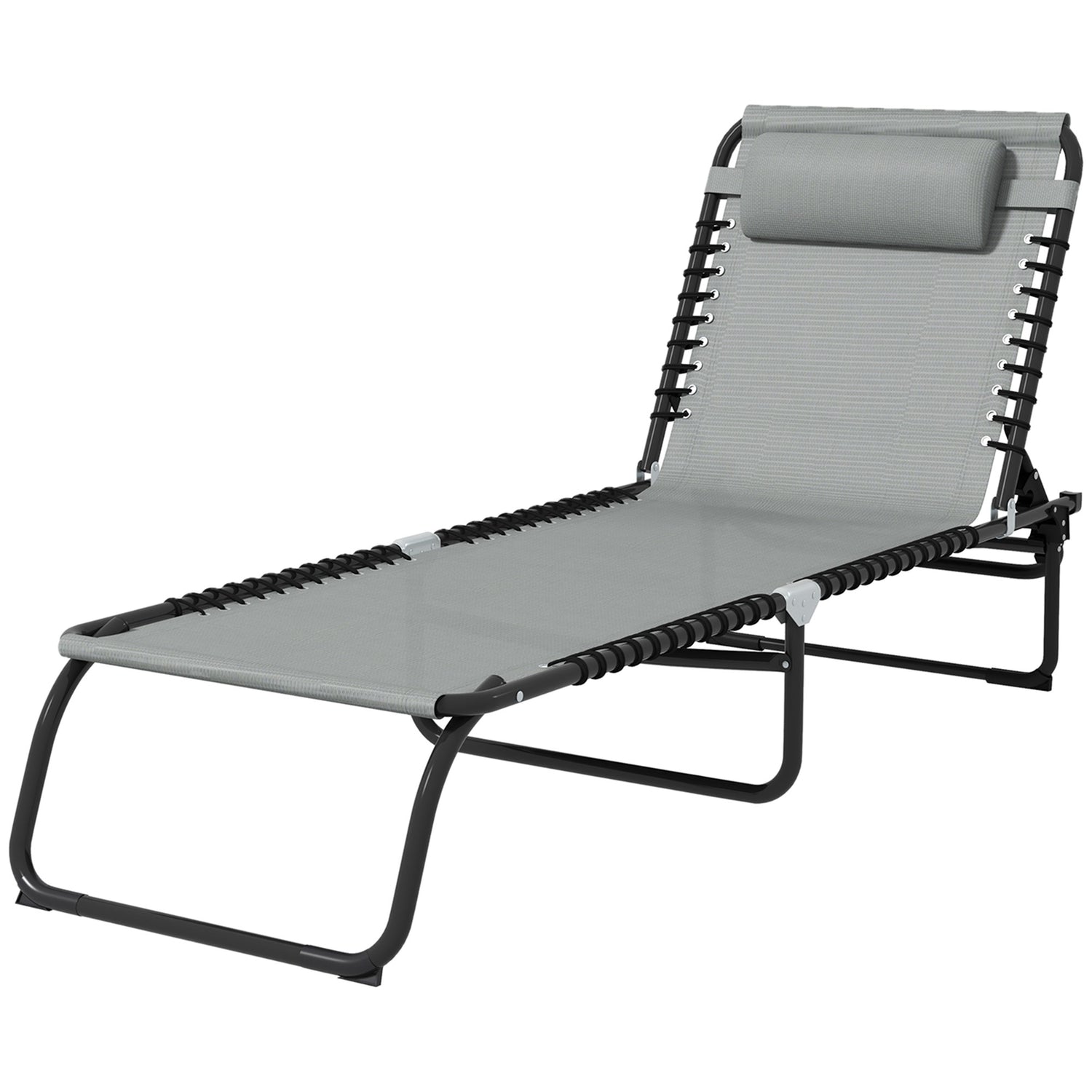 Outsunny Folding Sun Lounger Beach Chaise Chair Garden Cot Camping Recliner with 4 Position Adjustable Light Grey
