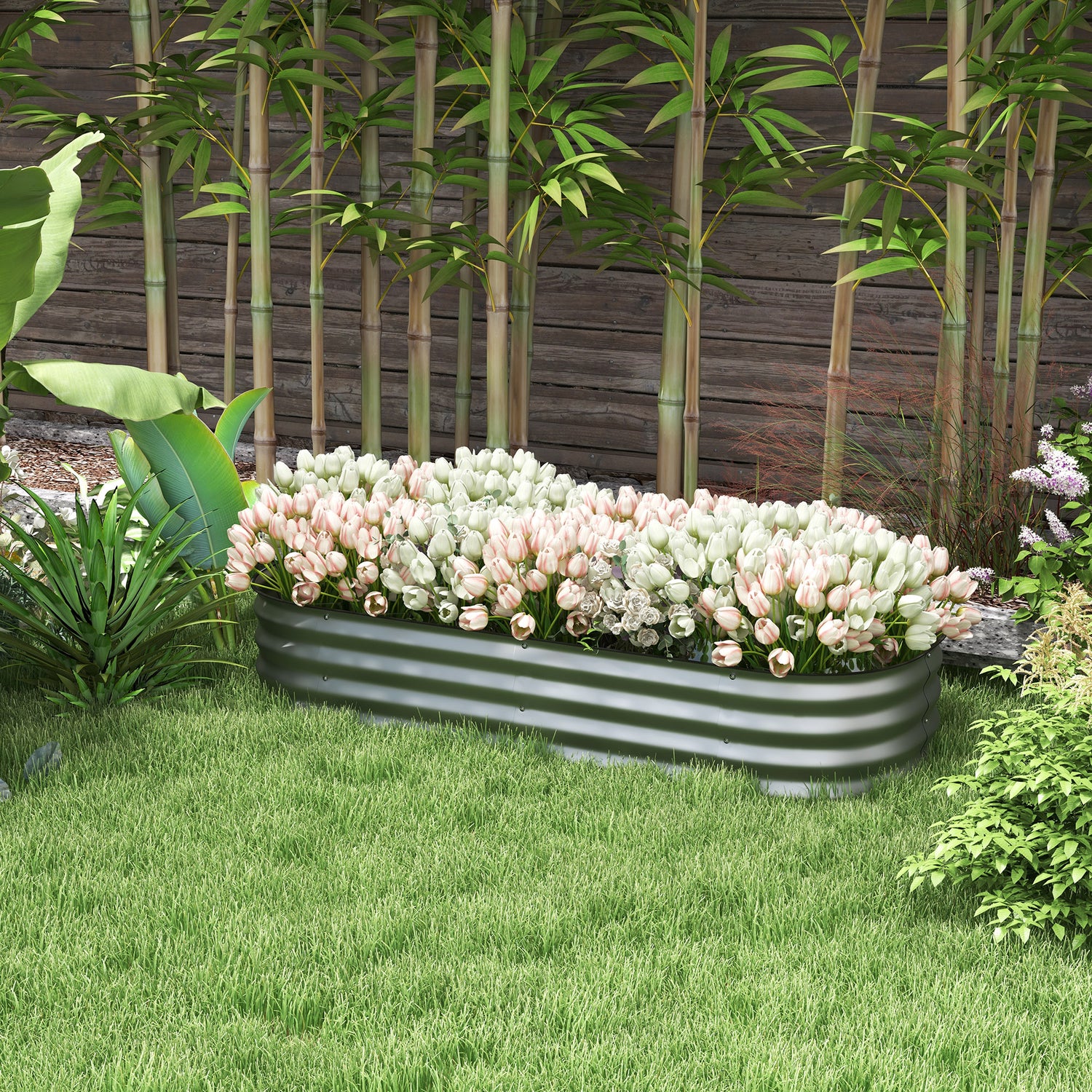 Outsunny Galvanised Raised Garden Bed, Metal Planter Box with Safety Edging, for Flowers, Herbs, Succulents, Silver