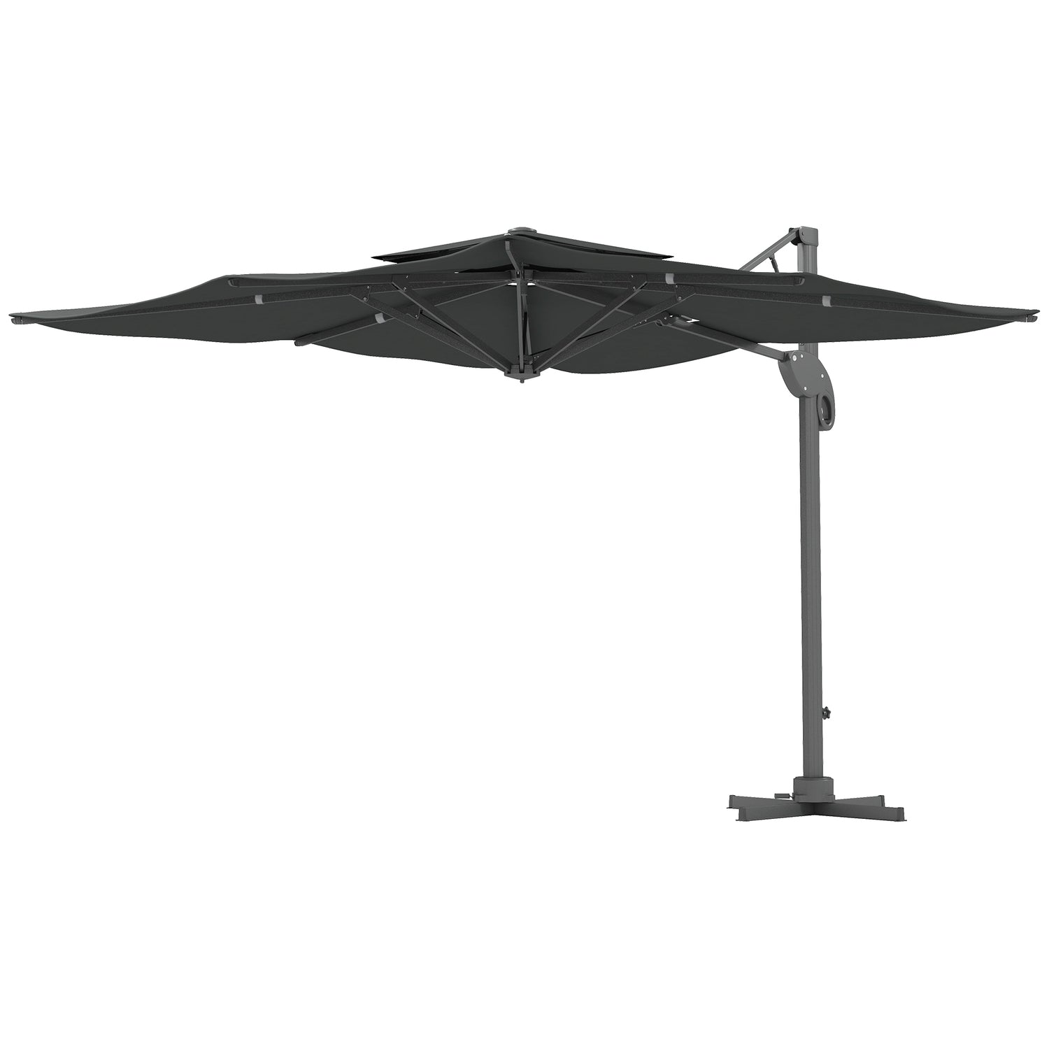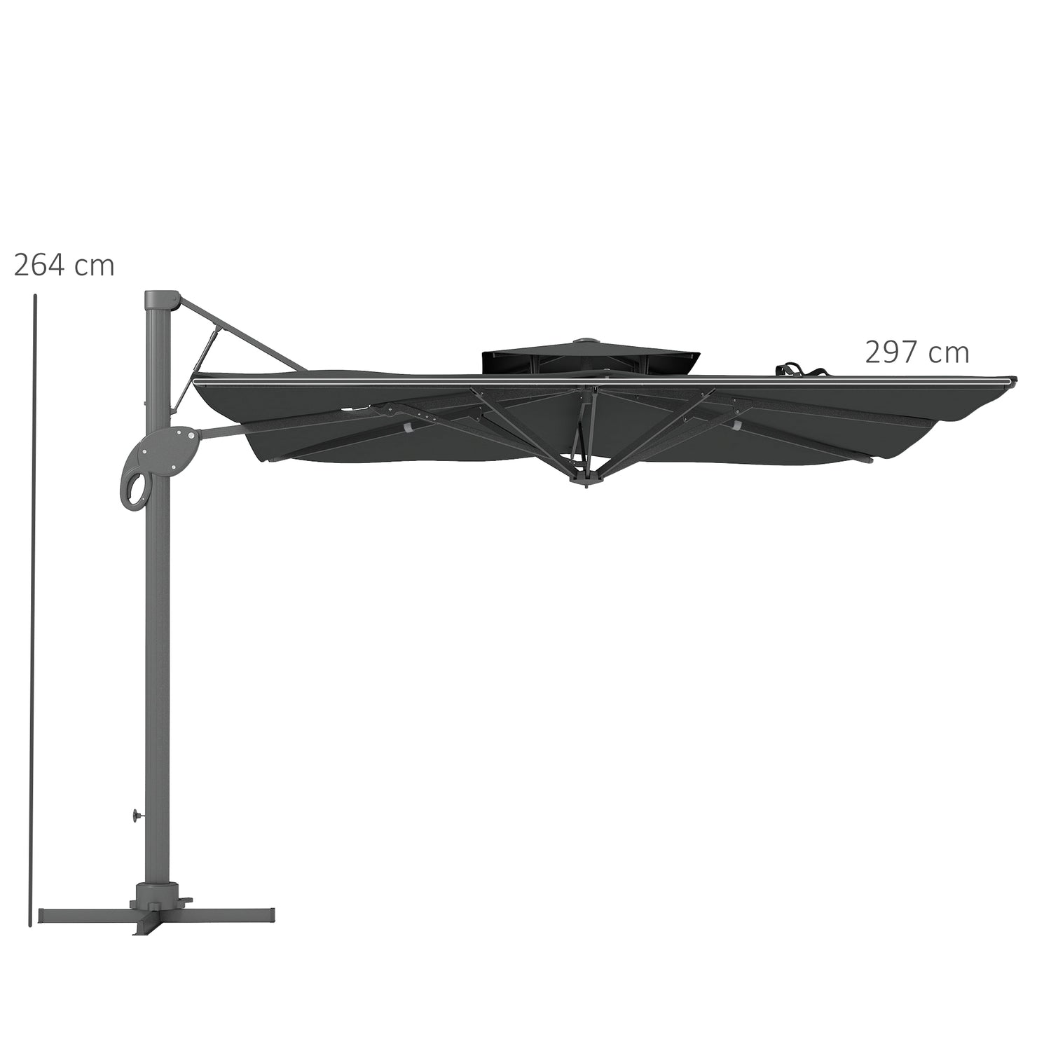 Outsunny Garden Parasol, 3(m) Cantilever Parasol with Hydraulic Mechanism, Dual Vented Top, 8 Ribs, Cross Base, Grey