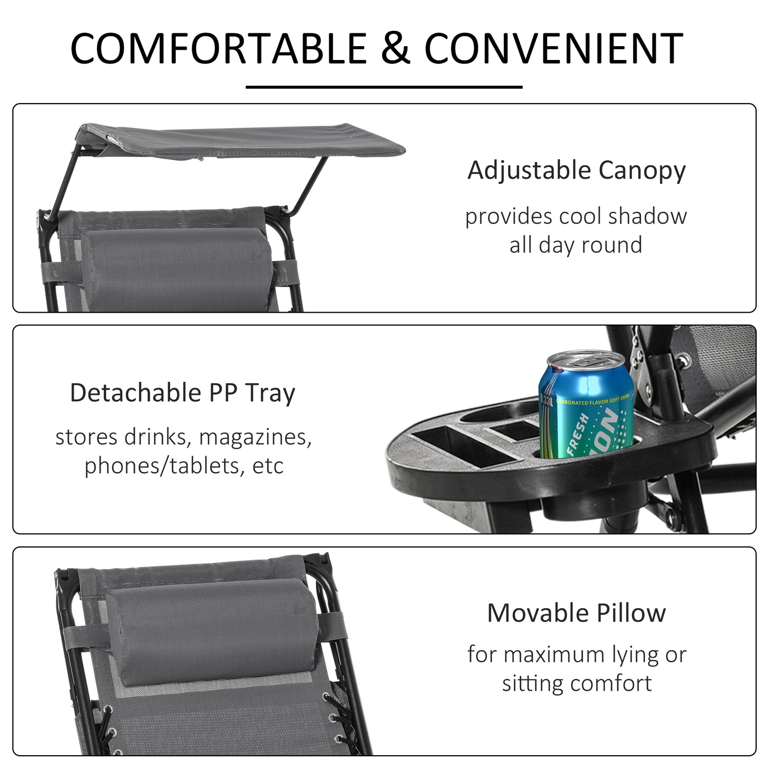 Outsunny Garden Rocking Chair Folding Recliner Outdoor Adjustable Sun Lounger Rocker Zero-Gravity Seat with Headrest Side Holder Patio Deck - Grey Seat,