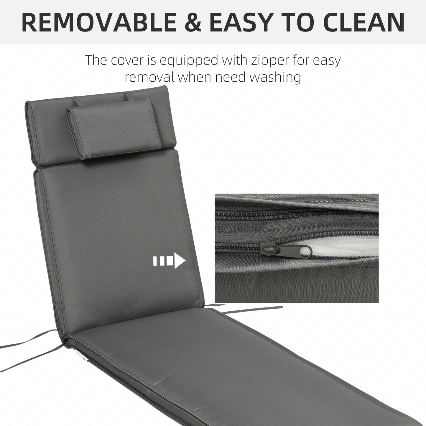 Outsunny Garden Sun Lounger Cushion Replacement Thick Sunbed Reclining Chair Relaxer Pad with Pillow - Grey