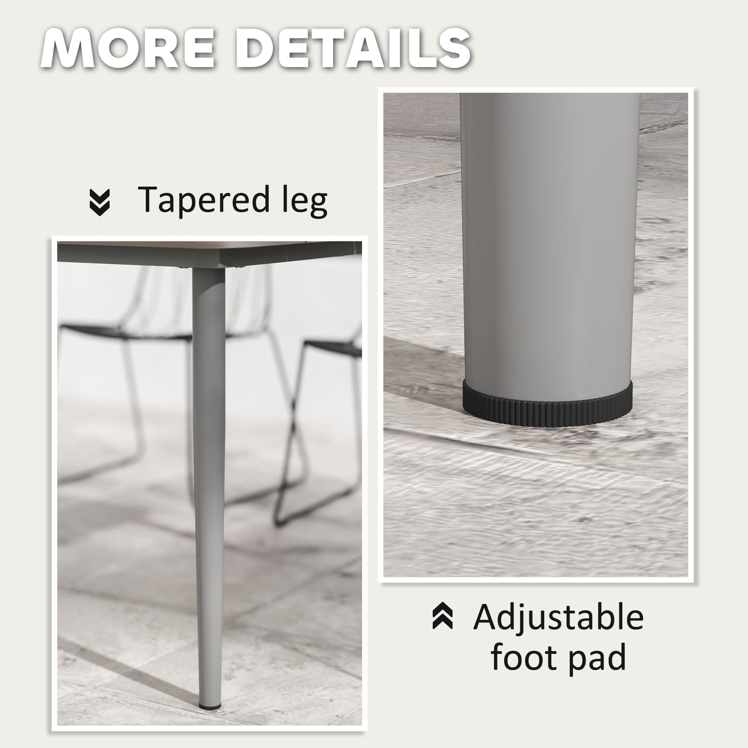 Gather round this Outsunny garden dining table, designed to seat six comfortably. Featuring a robust metal frame with a sleek powder-coated finish and crafted from wood plastic composite, it's not only weather-resistant but also a breeze to clean. Its modern minimalist style effortlessly enhances any garden setting, making it your go-to for outdoor gatherings.