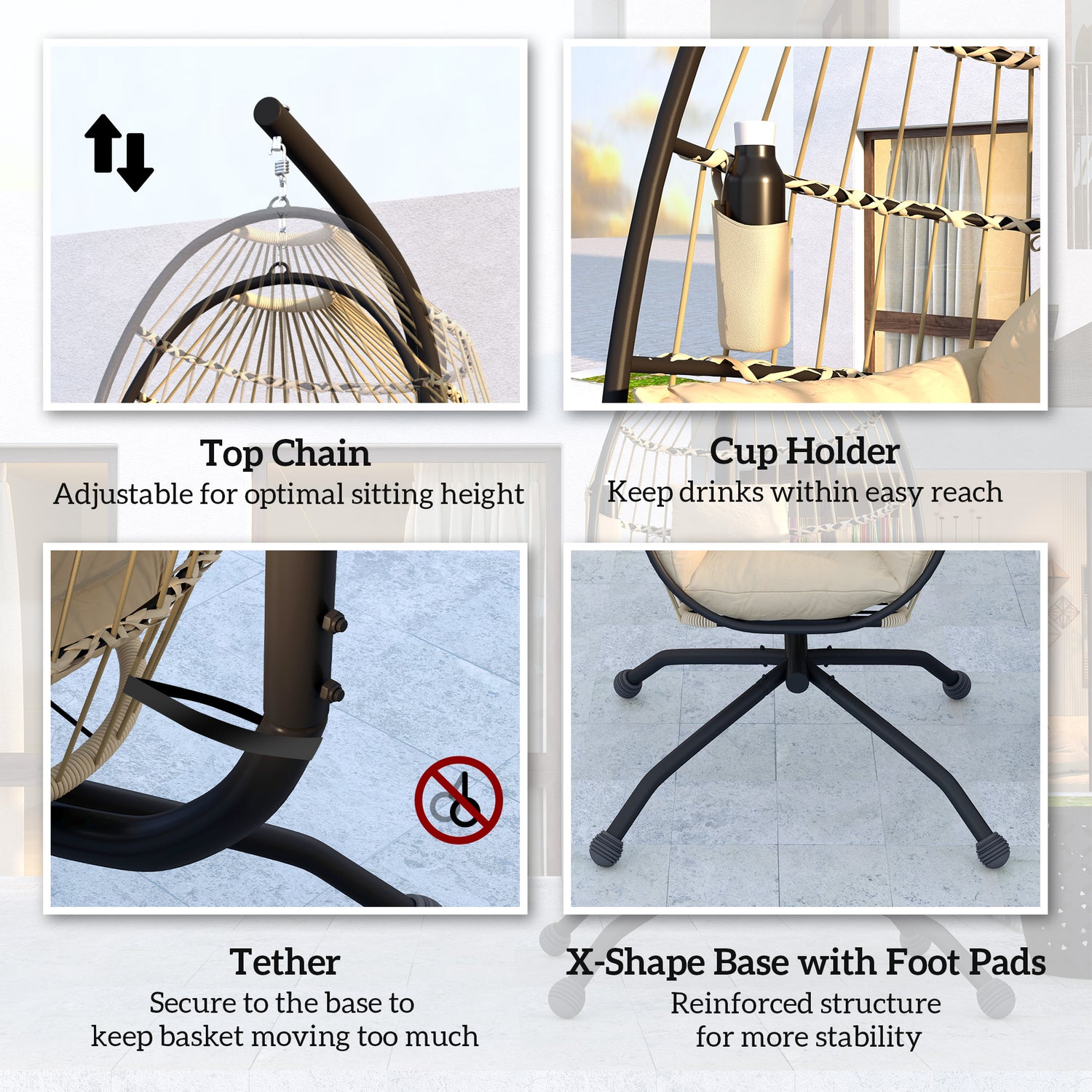 Outsunny Hanging Egg Chair with Stand, Cushion, Headrest & Cup Holder for Garden, Patio, Balcony, Khaki
