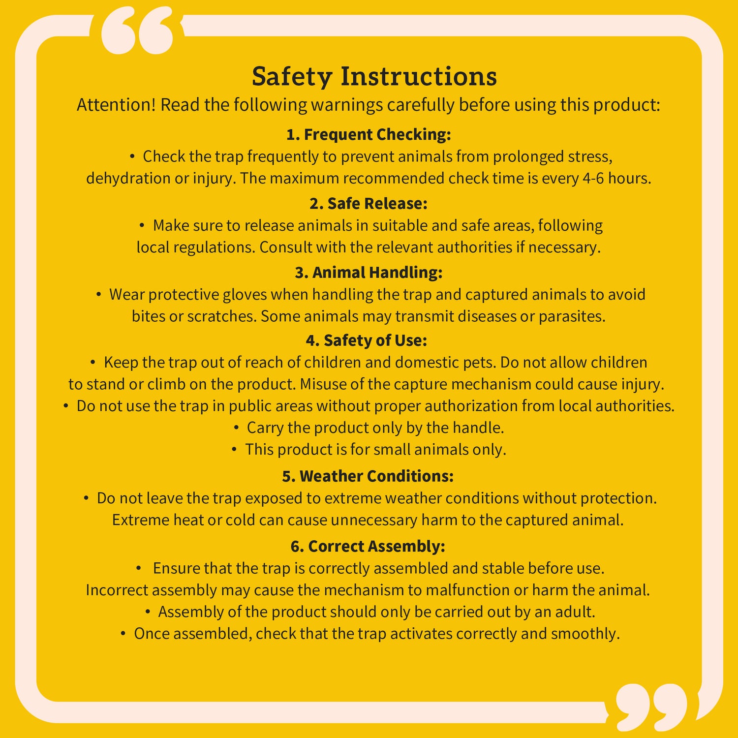 - Dual entry with auto-locking mechanism: Our humane rat trap features two entry doors and a sensitive trigger plate in the centre - once a small animal steps inside, both doors instantly drop down for a quick capture, while tight mesh prevent escapes.