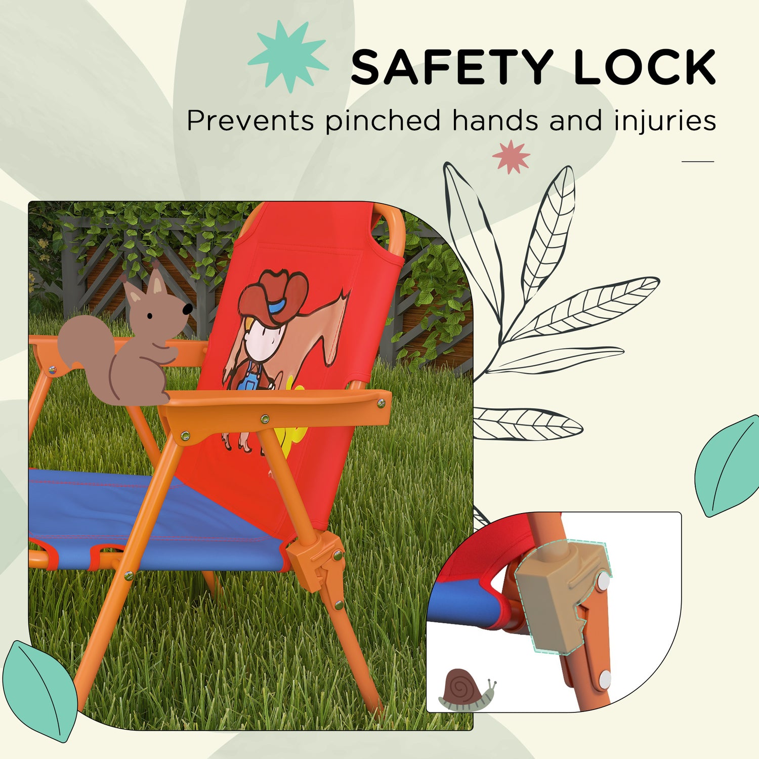 Elevate playtime with our fantastic Outsunny cowboy-themed kids garden table and chairs set. An enchanting picnic table with two foldable chairs, igniting youthful imagination and creating delightful al fresco moments. An adjustable parasol shields them from sun or drizzle - great for tea parties. Easy portability allows you to take it anywhere, whether it's the garden, park or beach. Drawing, snacking, playing and more, this space for kids promises endless possibilities.
