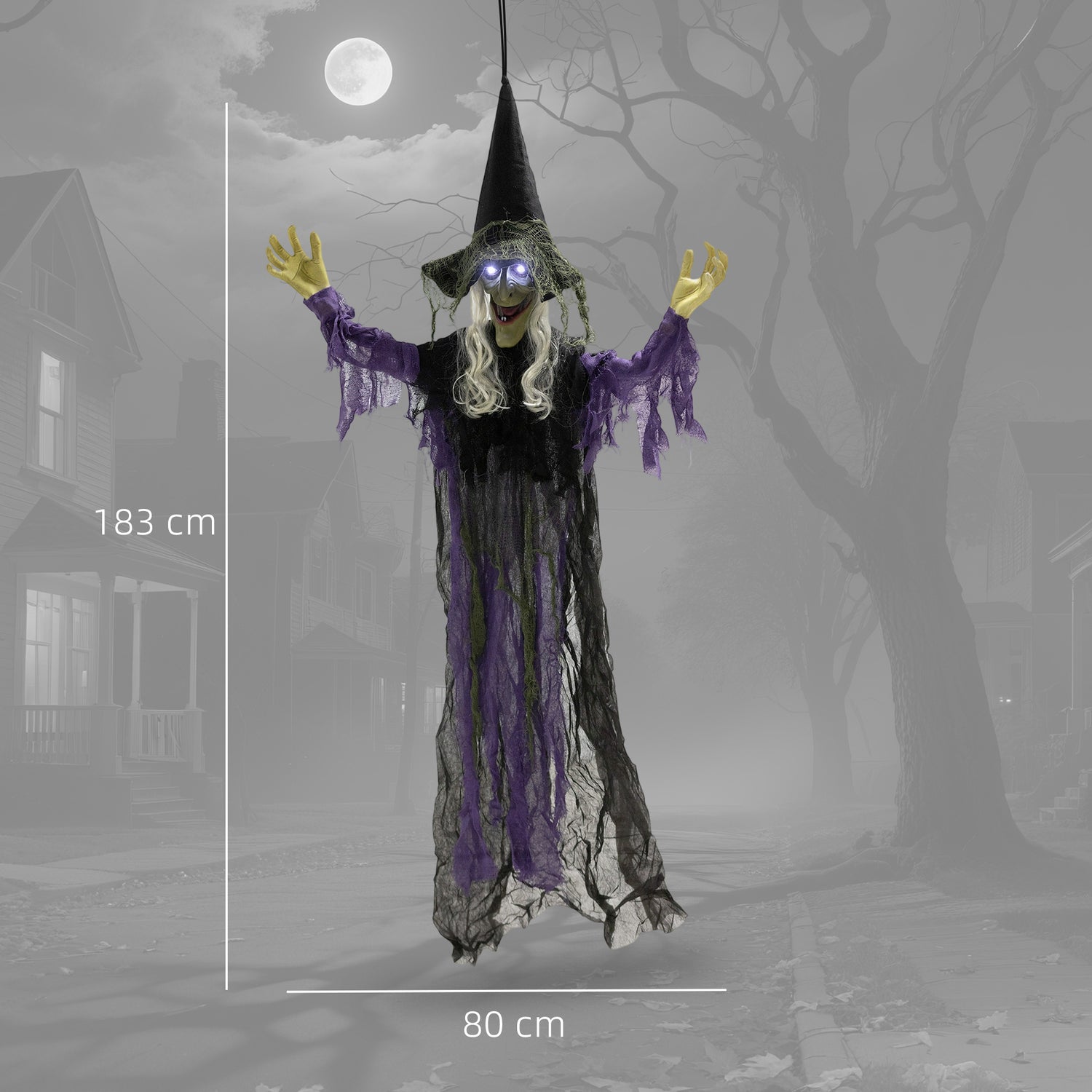 Outsunny Life Size Halloween Animated Hanging Witch, Glowing LED Eyes, Scary Decorations, Battery Operated, Indoor Props, 183 cm, Black