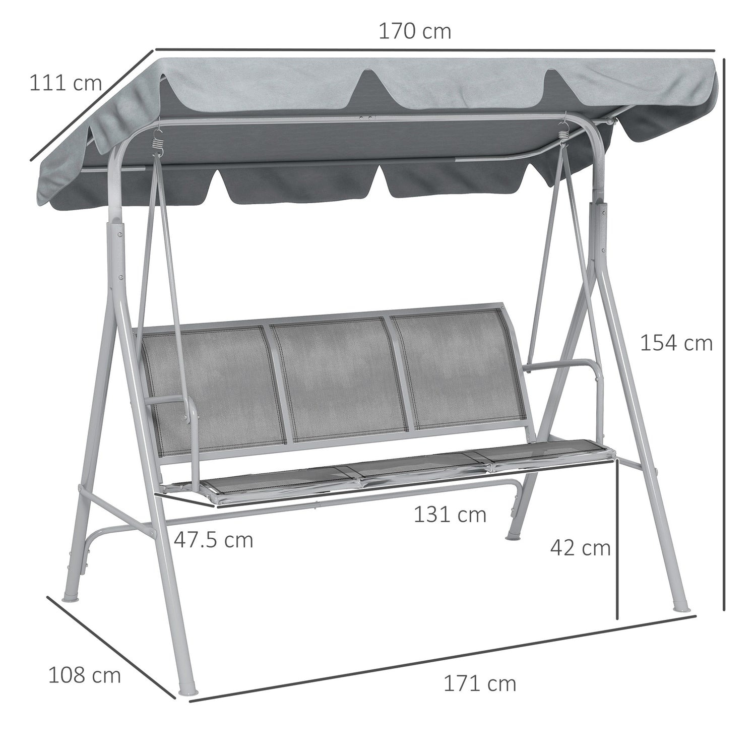 Outsunny Metal Garden Swing Chair, 3-Seater Swing Seat, Patio Hammock Bench Canopy Lounger, Light Grey