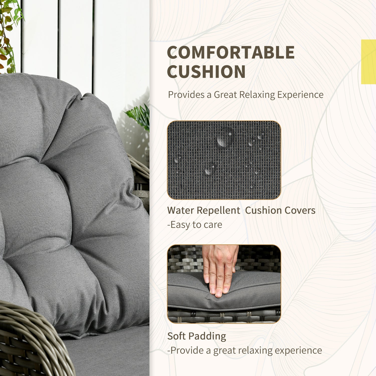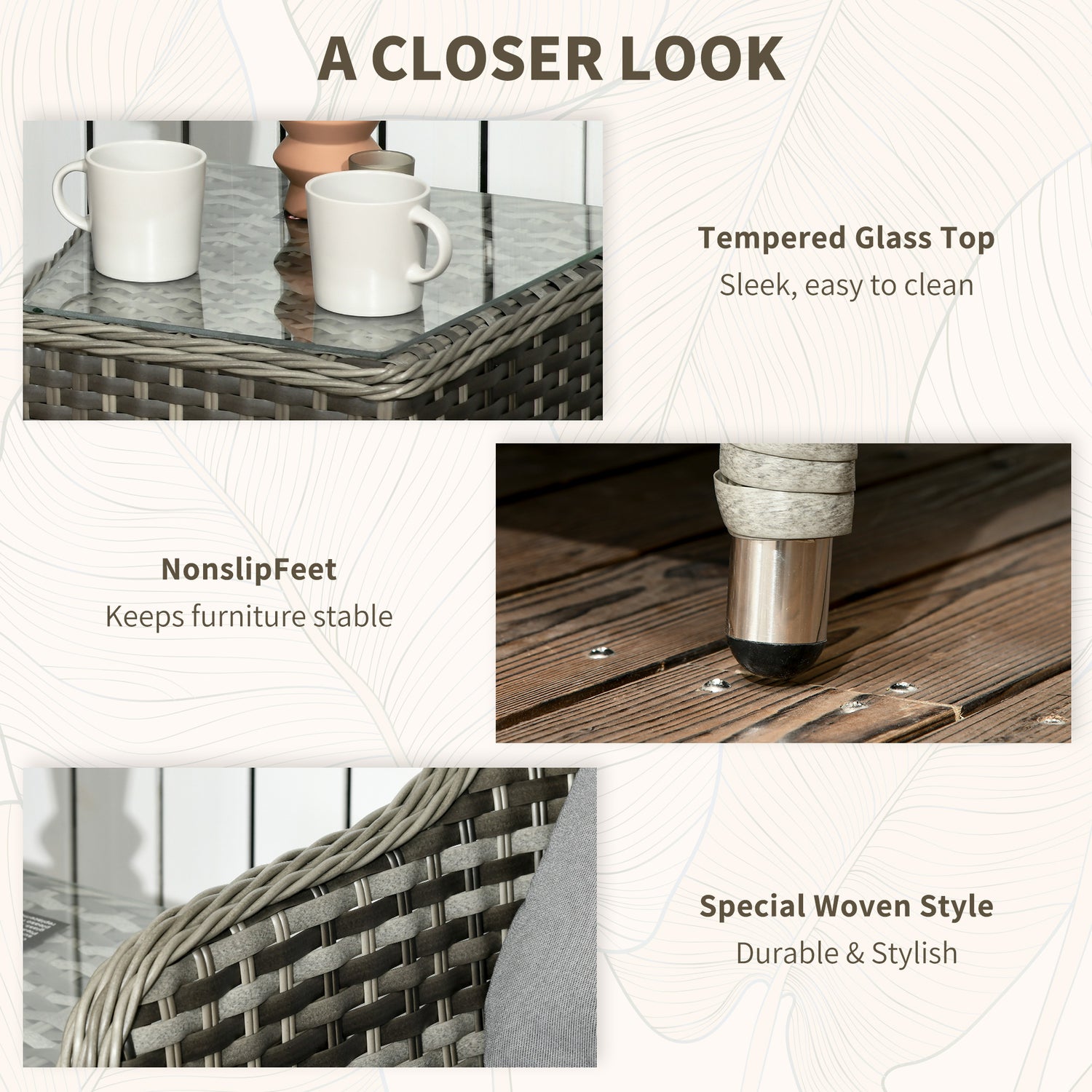Outsunny Modern 3 PCS Rattan Bistro Set, Patio Aluminium Balcony Furniture with Soft Cushions & Glass Top Table for Garden, Backyard, Grey