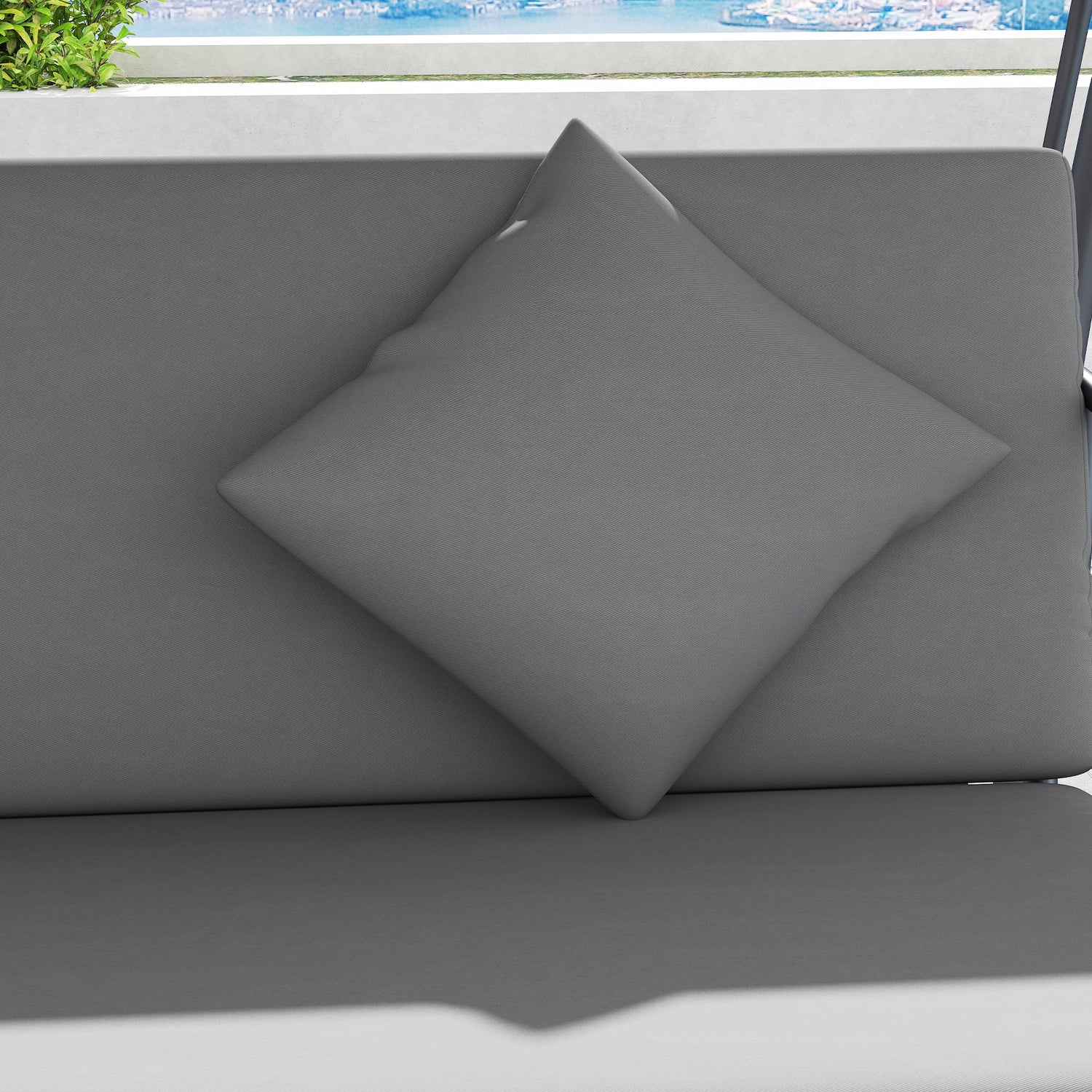 Outsunny Outdoor 2-in-1 Swing Chair Lounger 3 Seater Garden Swing Seat Bed Convertible Tilt Canopy W/ Cushion, Light Grey