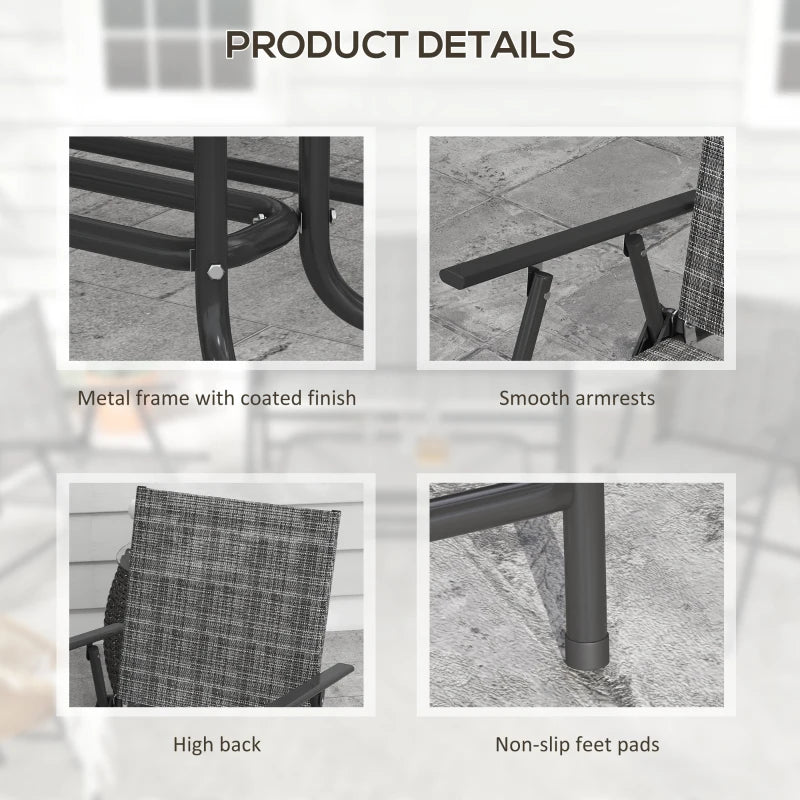 Outsunny Outdoor 4 Pieces Patio Furniture Set with Breathable Mesh Fabric Seat & Backrest, Garden Set with Two Foldable Armchairs, a Loveseat & Glass Top Table, Mixed Grey