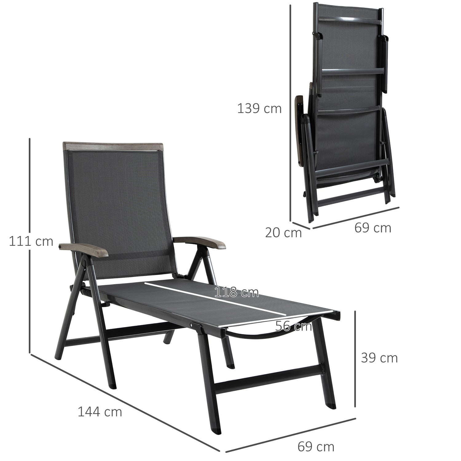 This reclining sun lounger from Outsunny is perfect for relaxing in the sun for hours on end. The breathable mesh fabric on the seat and back holds you comfortably, with high back and armrests for support. Adjustable to five positions, you can change what position you lay back. Folding design make the garden sun lounger is easy to carry with you and store.