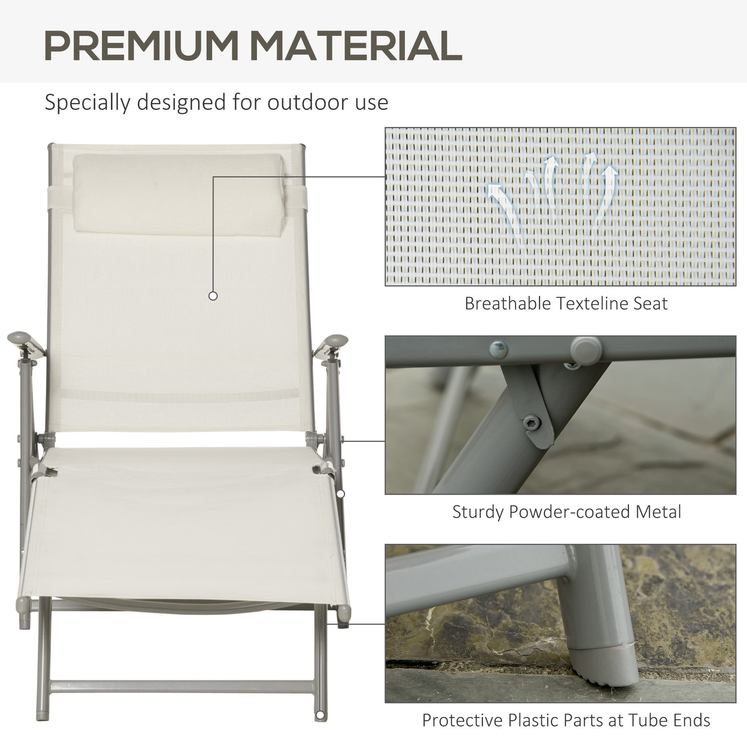 Outsunny Outdoor Patio Sun Lounger Garden Textilene Foldable Reclining Chair Pillow Adjustable Recliner with Cushion - Cream White
