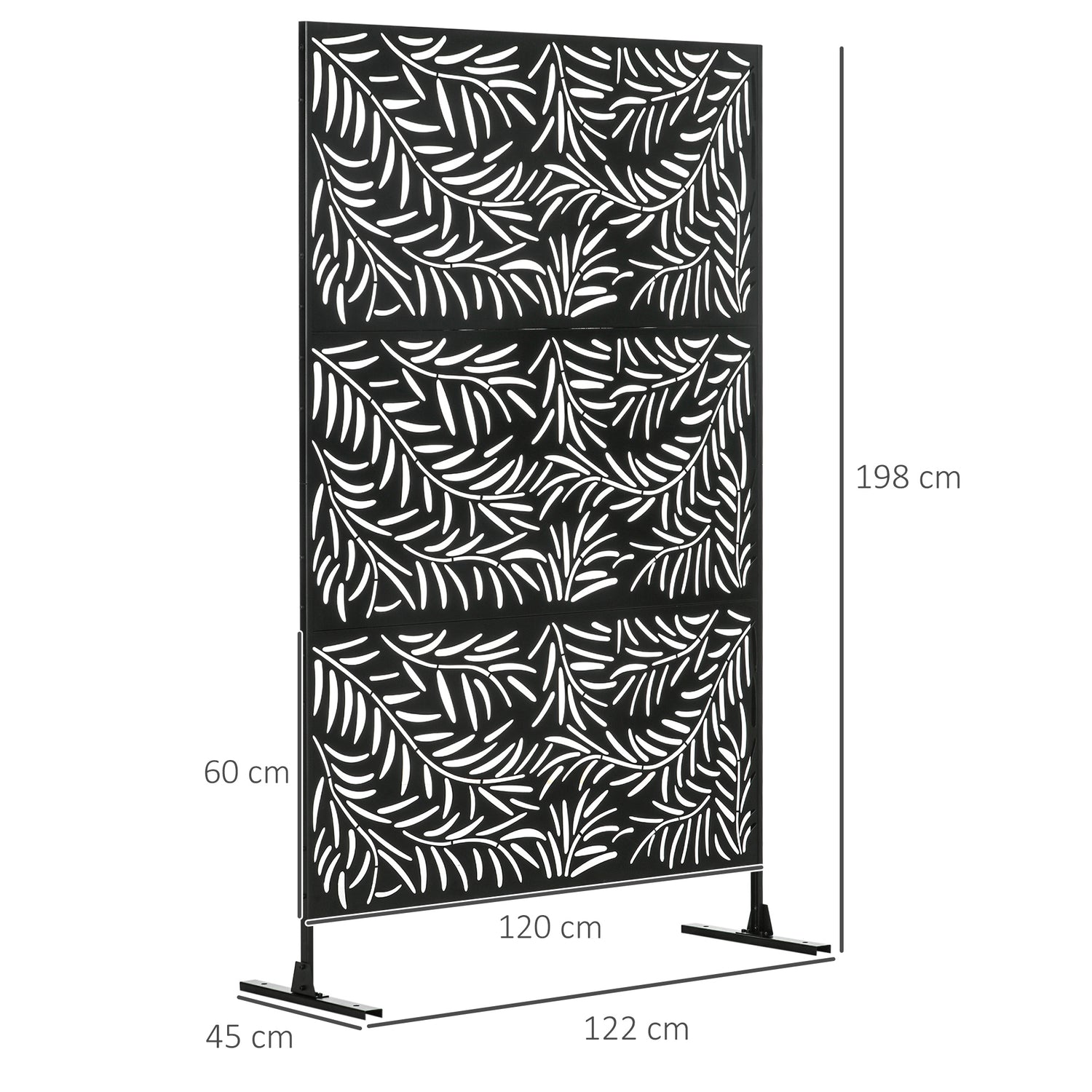 A dividing screen for patio, garden, outdoor - and even indoor spaces. This Outsunny 198 x 122cm piece will bring a pretty and decorative touch to your space, whilst creating a private section whenever you require it. It's made from steel for strength, crafted into a cut-out design for a beautiful look which fits in effortlessly with your garden surroundings. Comes complete with two long legs for balance.