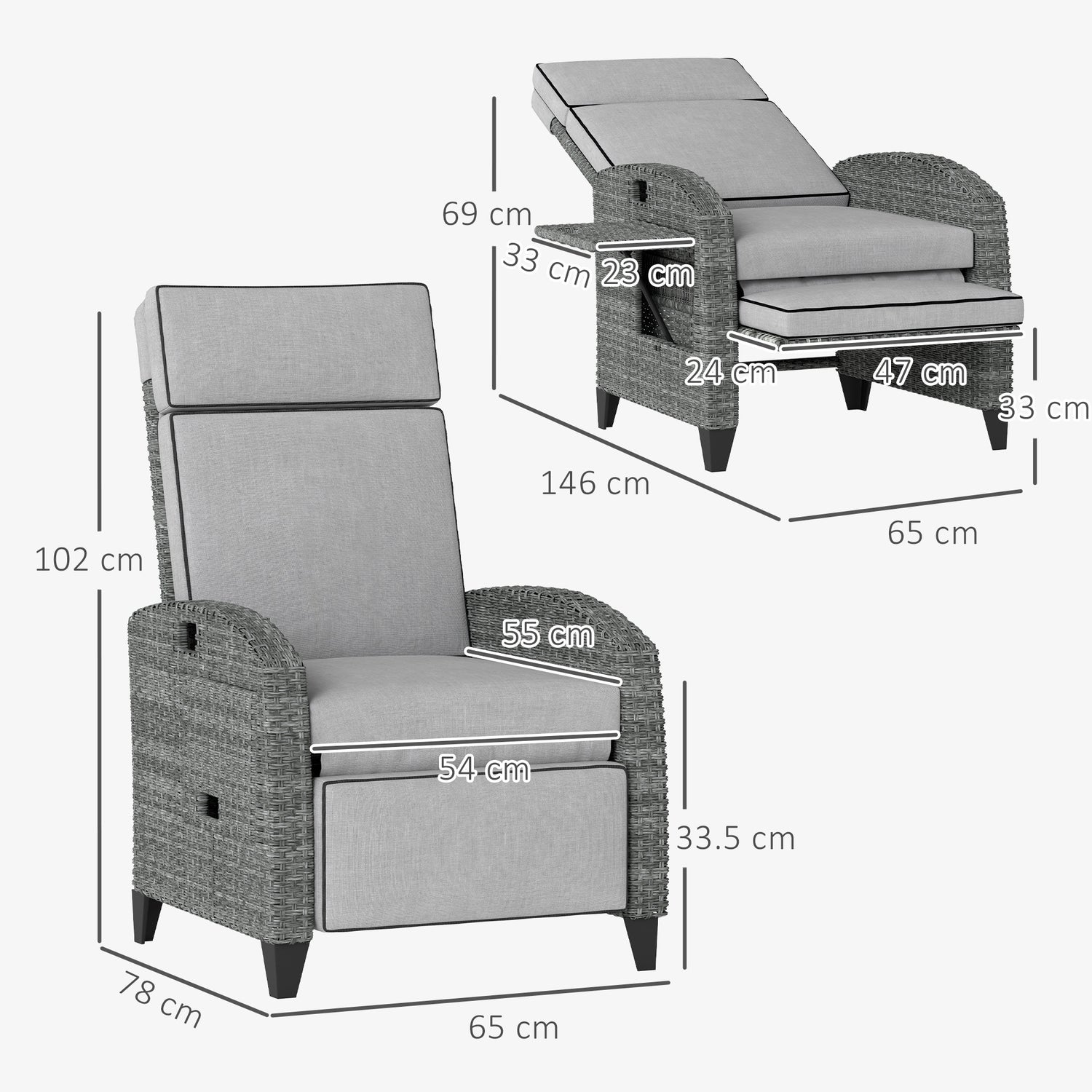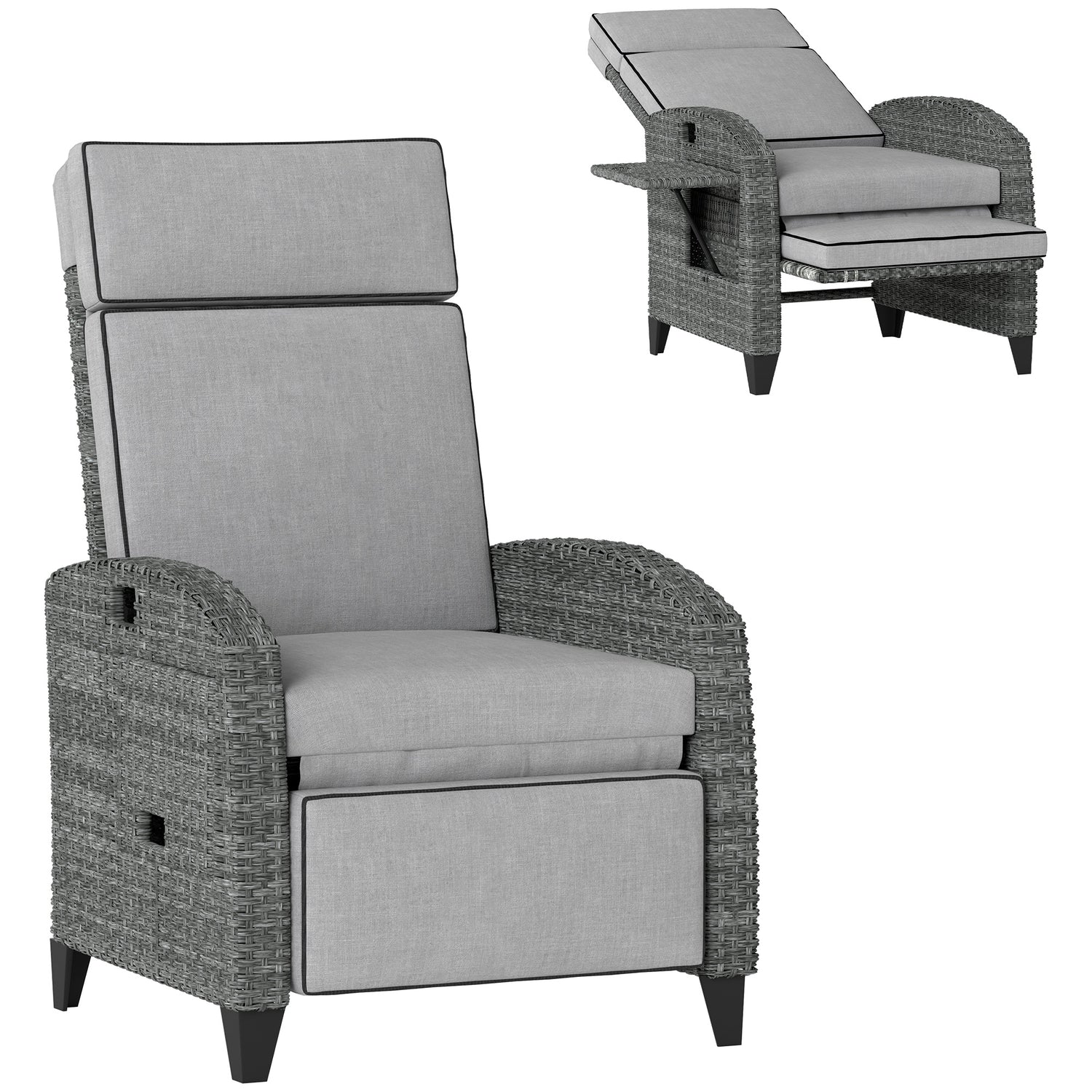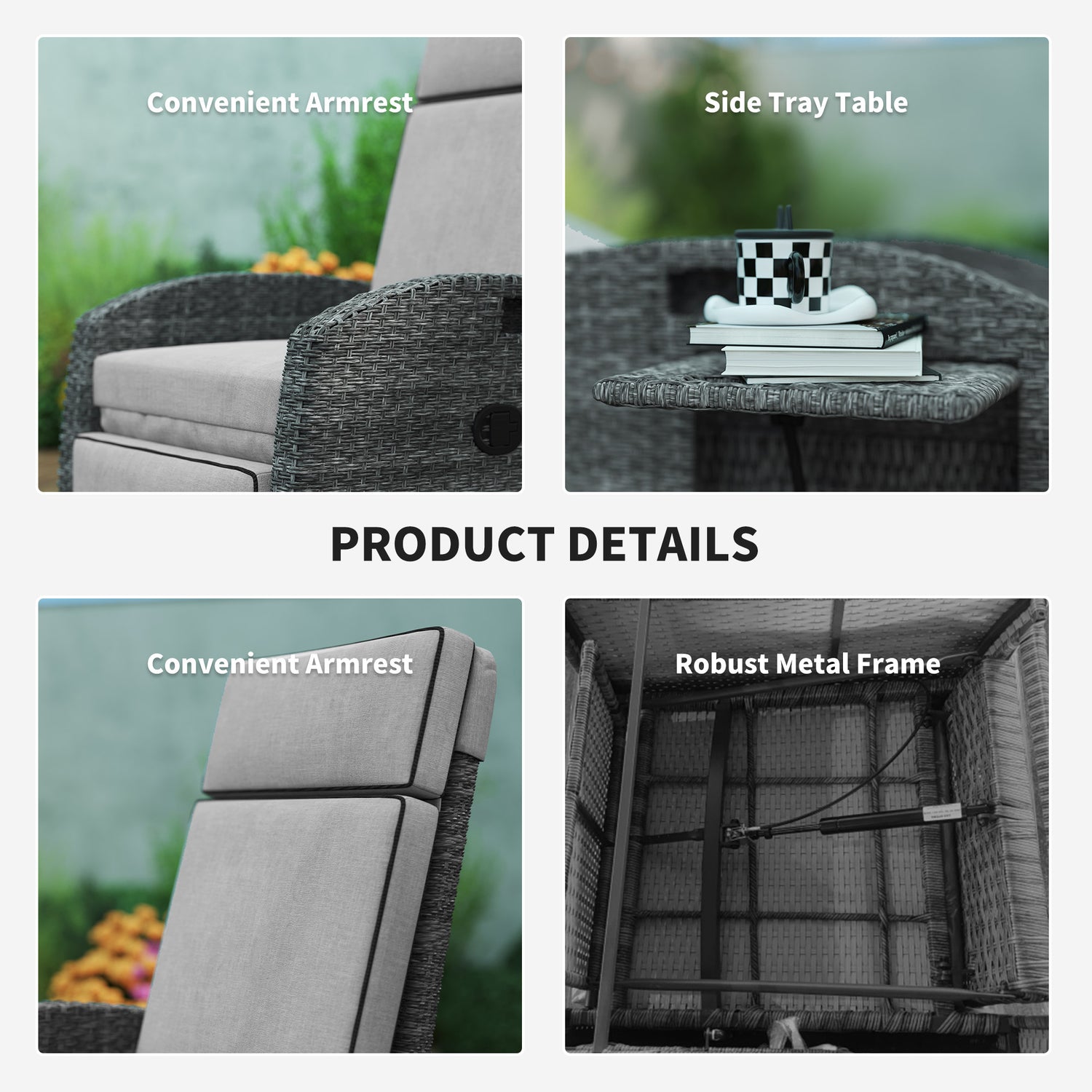 Outsunny Outdoor Recliner Chair with Adjustable Backrest and Footrest, Cushion, Side Tray, Light Grey