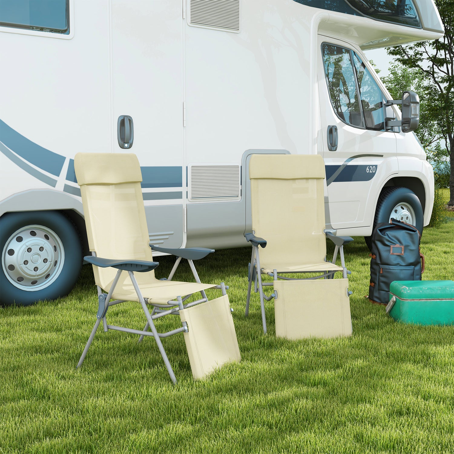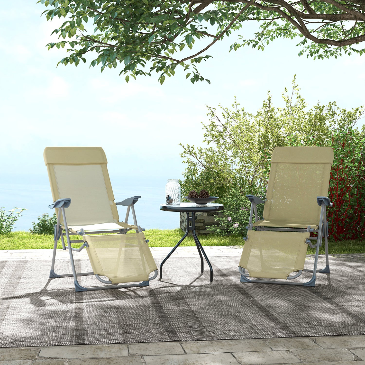Outsunny Outdoor Sun Lounger Set of 2, Reclining Garden Chairs w/ Adjustable Footrest, 2 pcs Recliner w/ 5-level Adjustable Backrest, Headrest, Beige