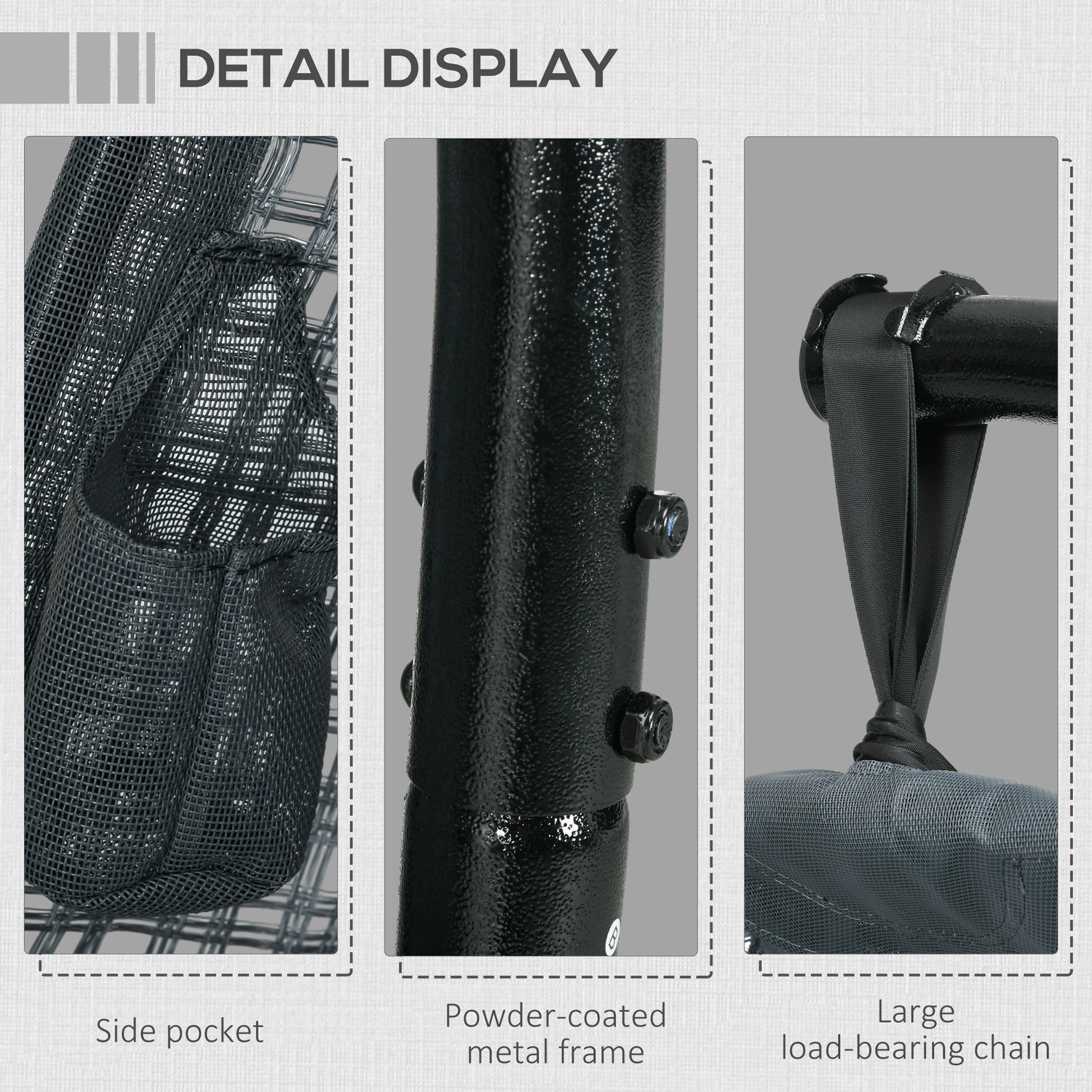 Outsunny Outdoor Swing Chair w/ Thick Padded Cushion, Patio Hanging Chair w/ Metal Stand, Foldable Basket, Cup Holder, Dark Grey