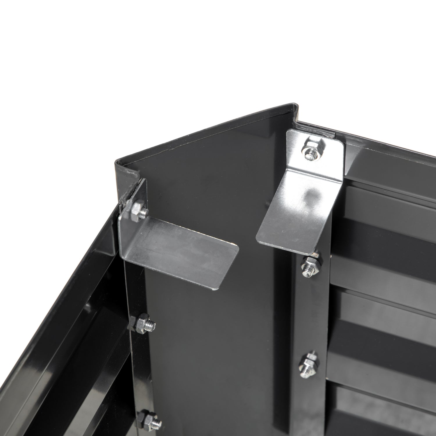 - Two-part design: steel base with polycarbonate roof. Use together or separate