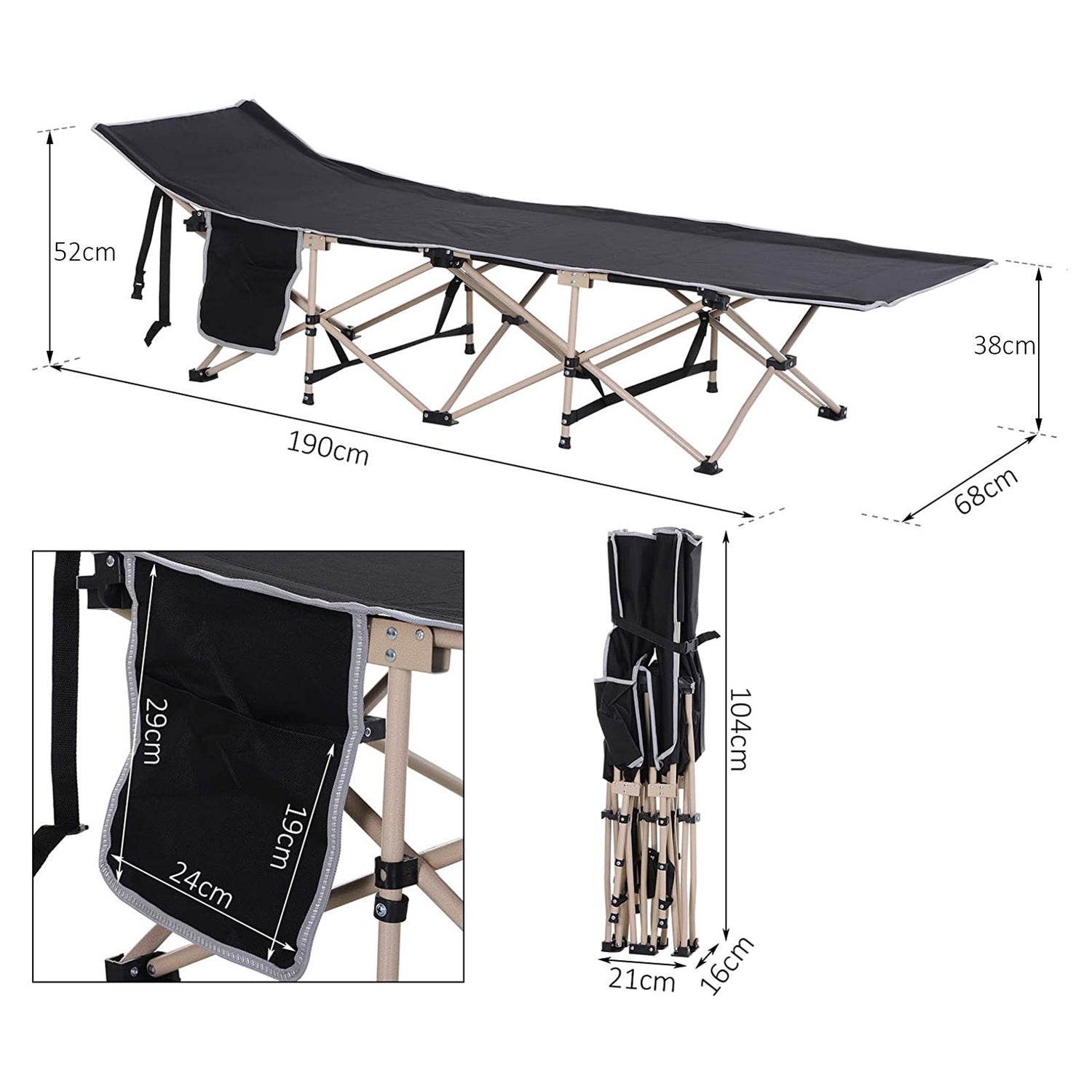 Outsunny Oxford Cloth Folding Single Camping Bed Lounger Black