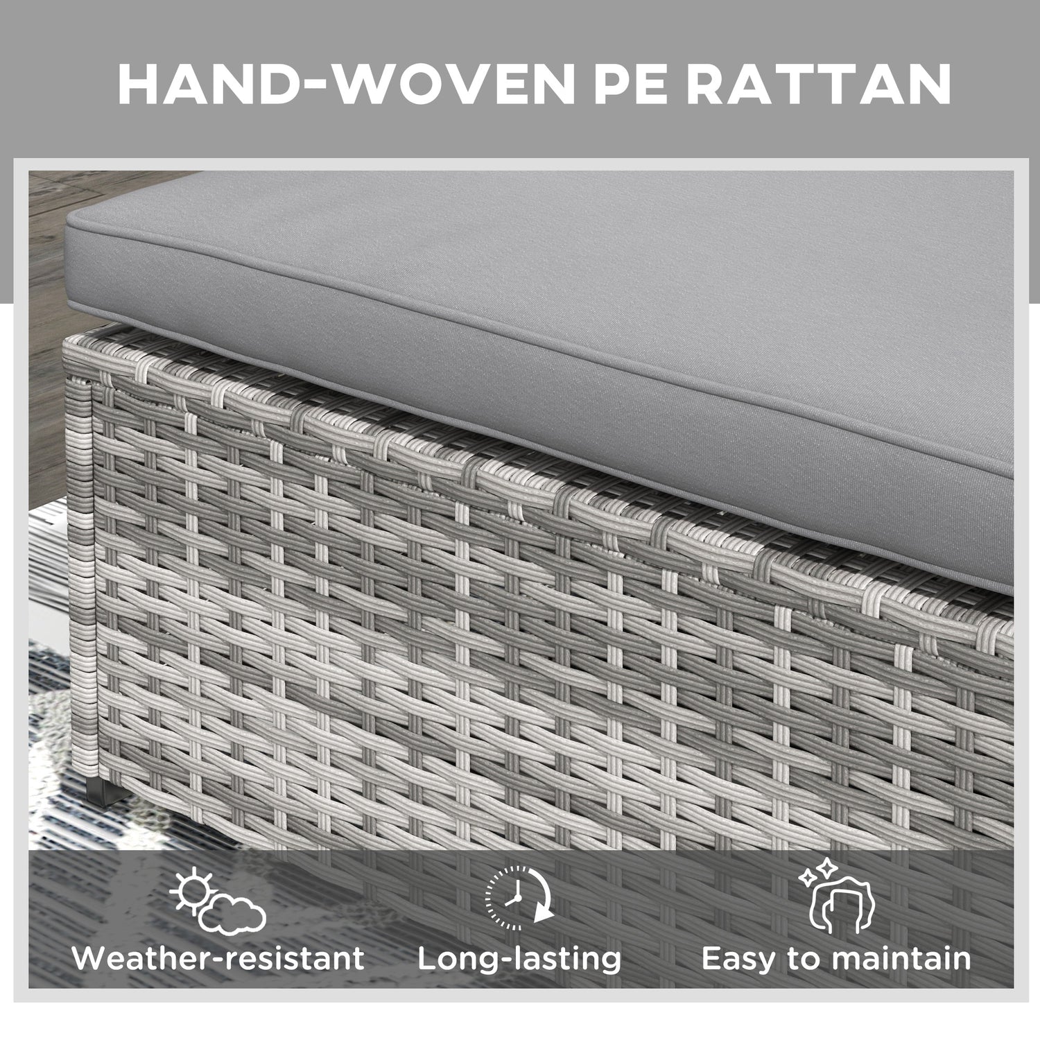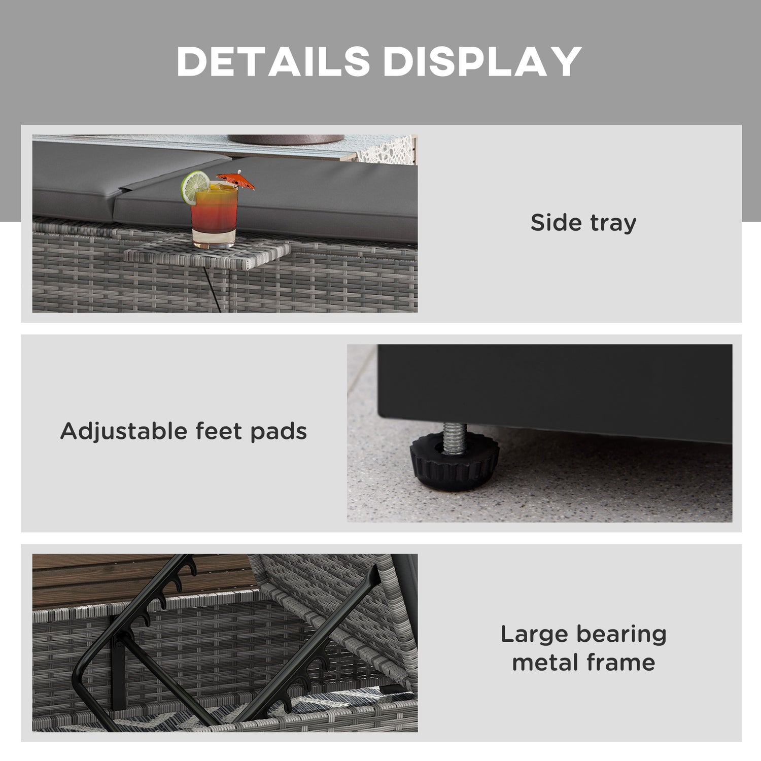 Outsunny Patio PE Rattan Lounger w/ Cushion, 5-Level Reclining Wicker Rattan Sun Lounger w/ Tea Tray, for Poolside, 120kg Weight Capacity, Grey