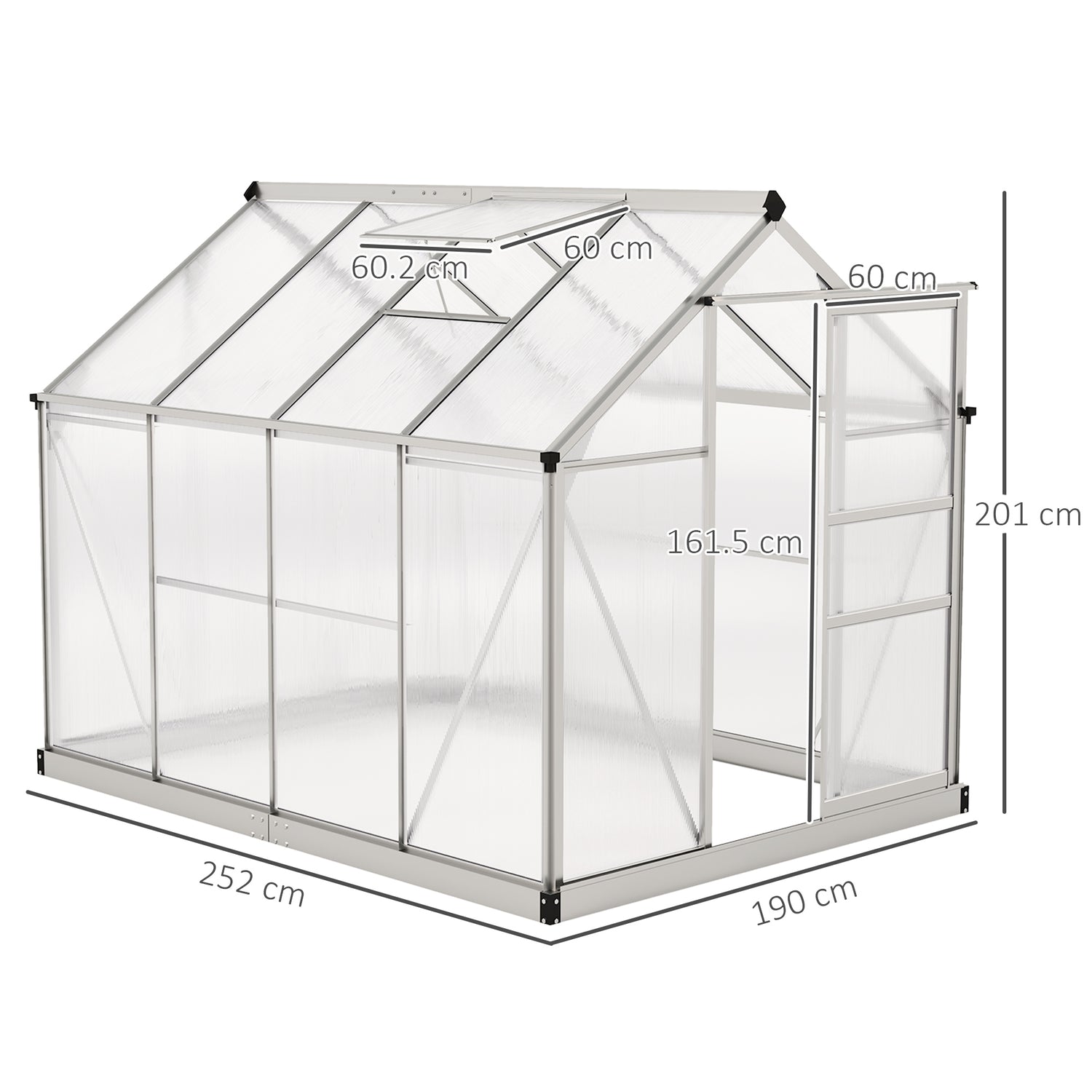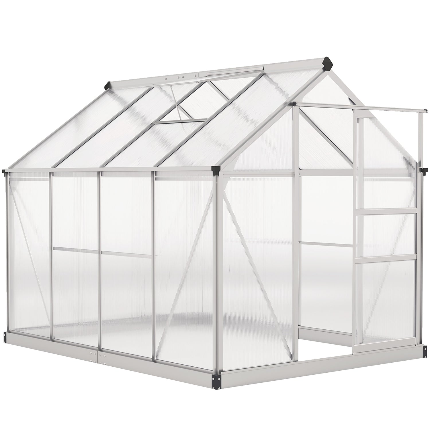 Outsunny Polycarbonate Greenhouse, Large Walk-In Green House with Slide Door and Window, Aluminium Frame, 6x8ft, Silver Tone