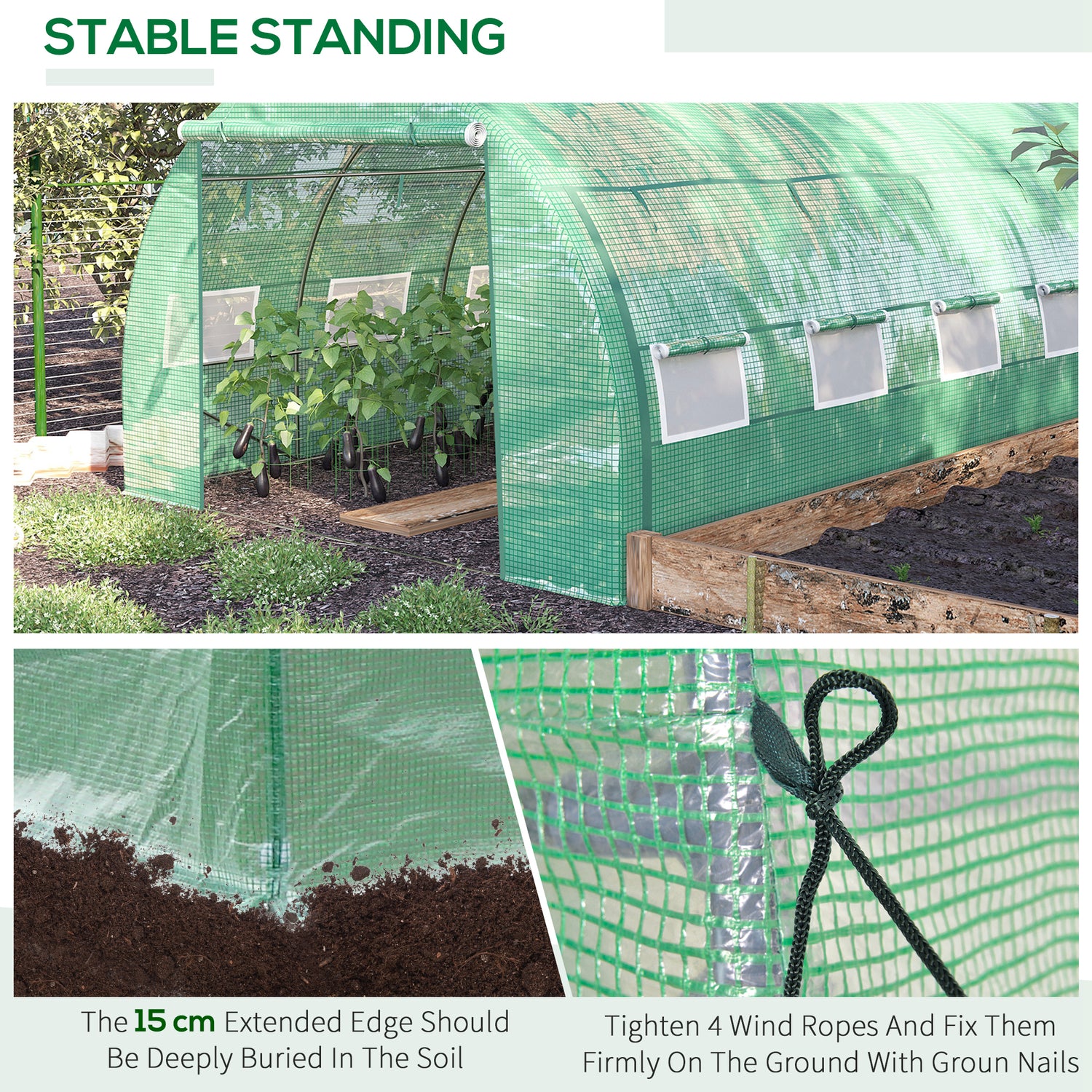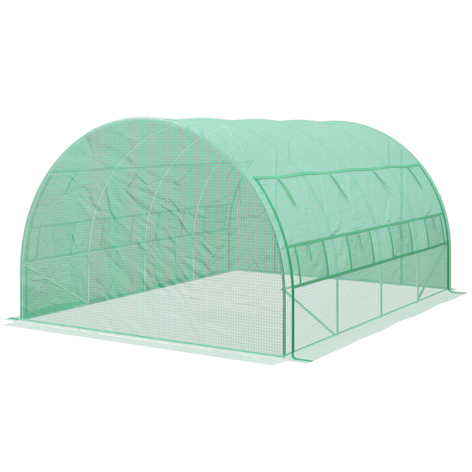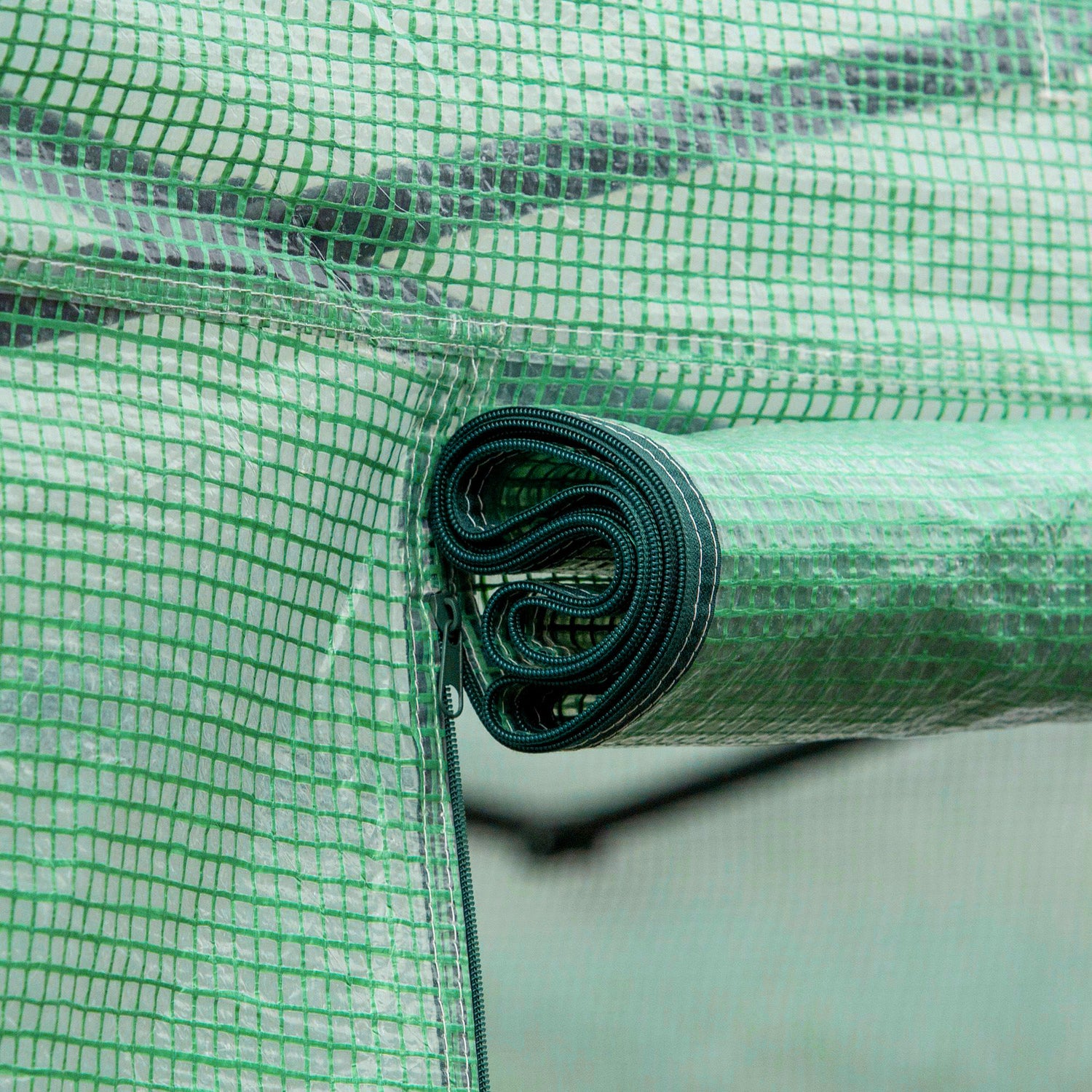 Outsunny Polytunnel Greenhouse Walkin Grow House Tent with Rollup Sidewalls Zipped Door and 8 Windows 4x3x2m Green