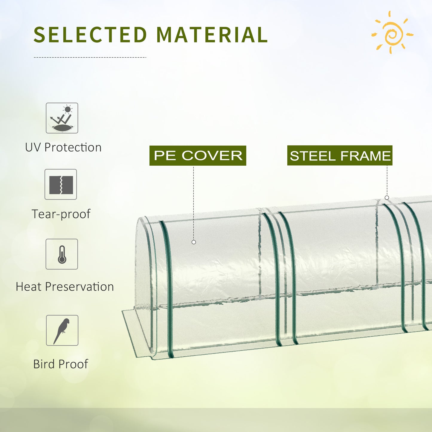 Outsunny PVC Tunnel Greenhouse Green Grow House Steel Frame for Garden Backyard with Zipper Doors 395x100x80 cm Clear