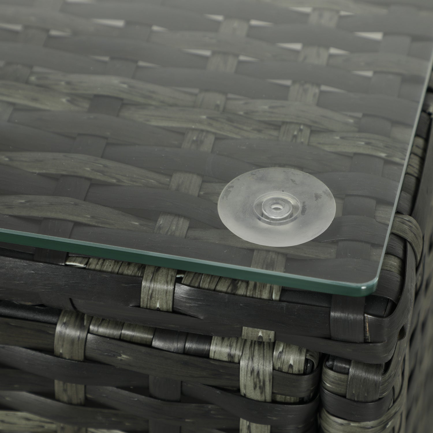 This Outsunny rattan furniture set allows you to rest and relax outdoors. Rust-resistant steel frames make strong pieces, with plastic wicker for a beautiful and tough rattan look. Seat and back cushions for comfort. Tempered glass tabletop for a sleek look - easy to maintain.