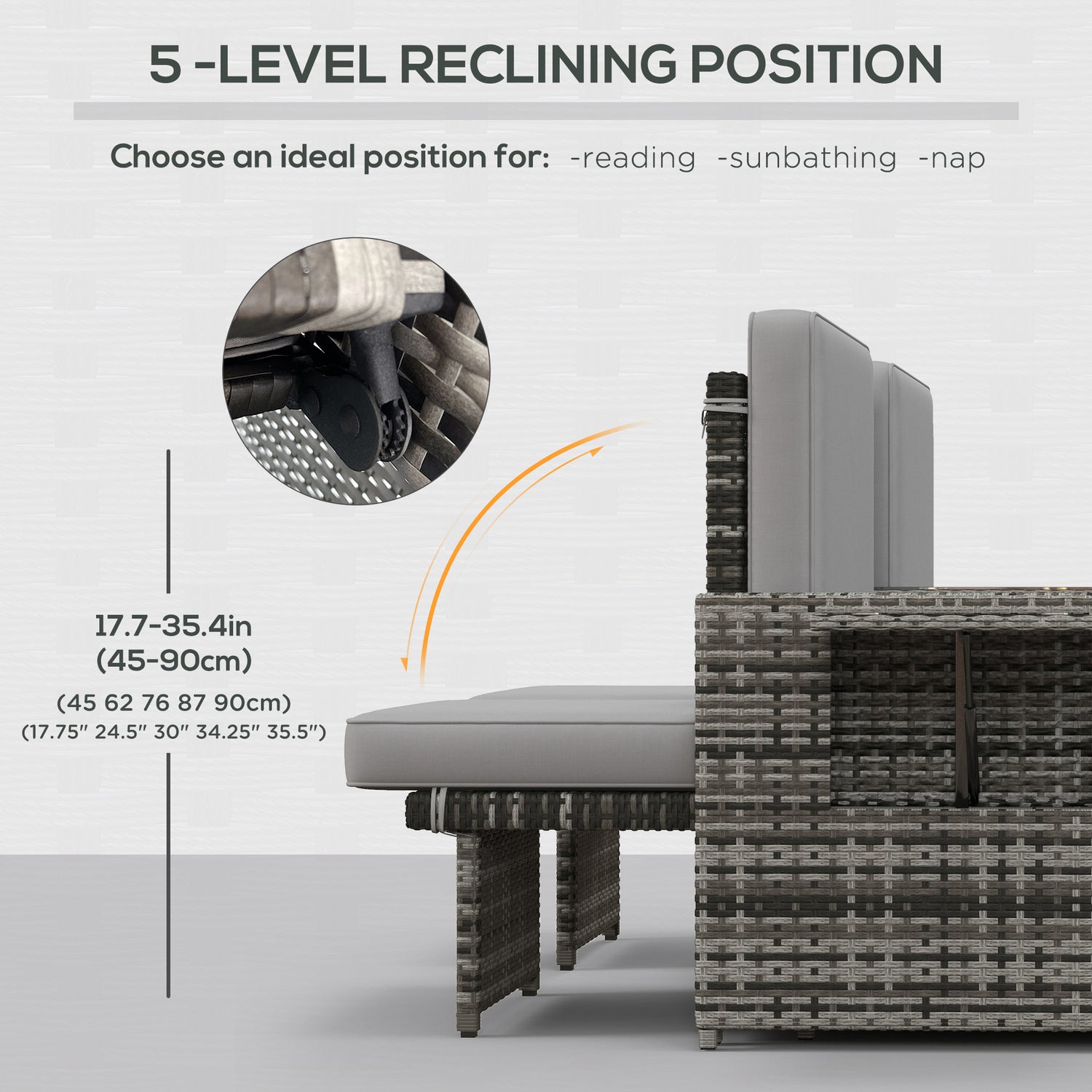 - Five-position rattan loungers: The back of each chair can be moved to various angles - time to relax the way you want.