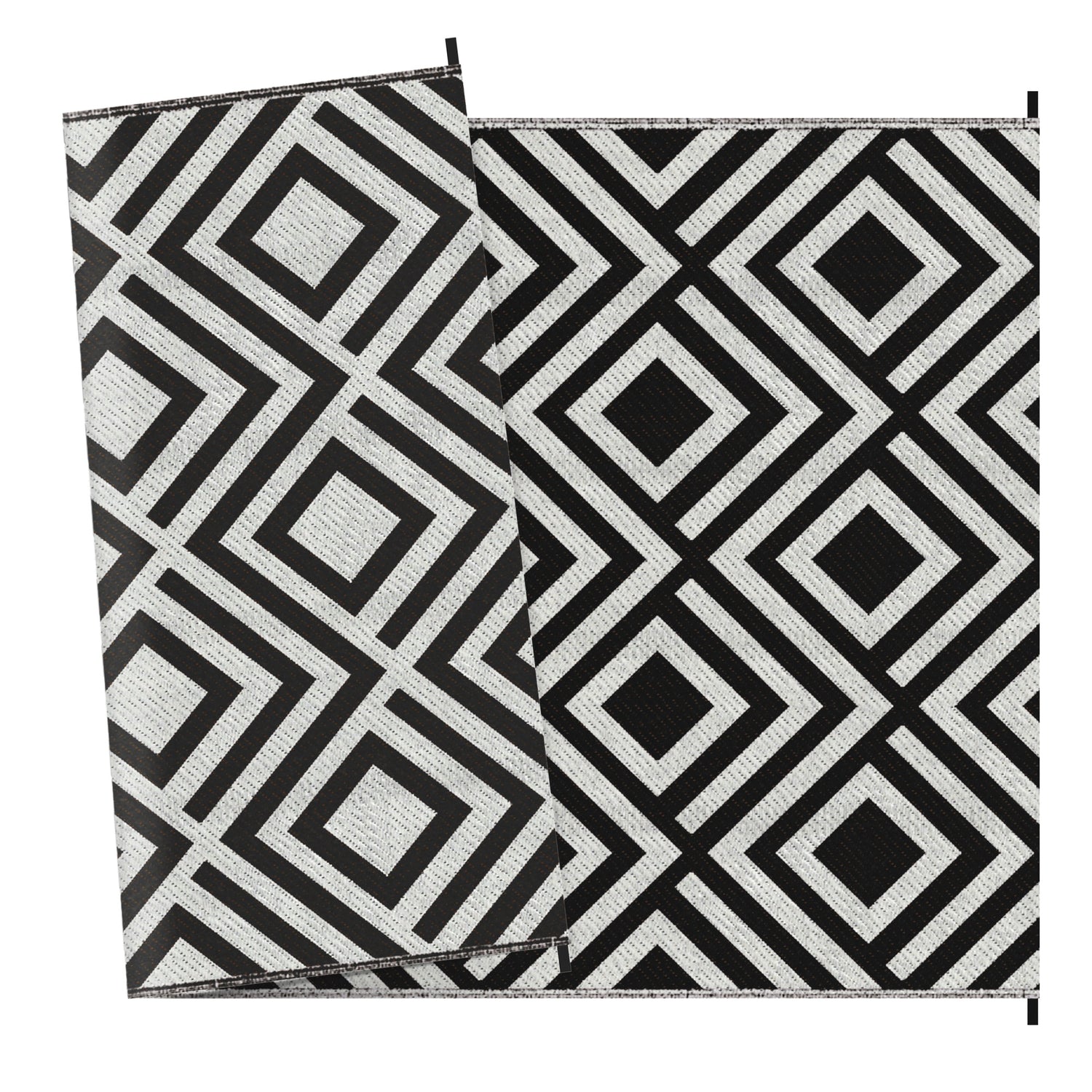 Outsunny Reversible Outdoor Rug, Plastic Straw Mat w/ Carry Bag Ground Stakes for Garden RV Picnic Beach Camping 182x274cm Black