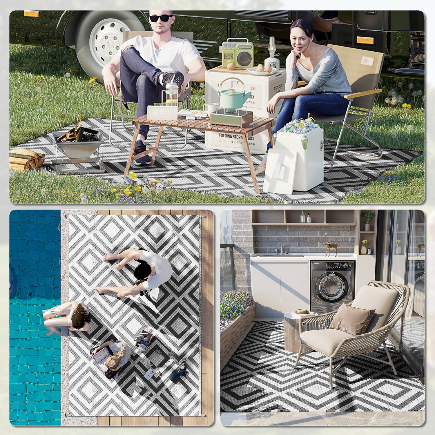 This Outsunny water-resistant outdoor rug is great for using outdoors. Whether it's for camping, picnics, festivals - or simply your own garden, simply fold it and go. Tear-resistant and water-resistant material makes it suitable for outdoor use. Plus, this outdoor rug is reversible, so you can simply turn over when a side gets dirty. Comes with carry bag to keep safe when travelling.