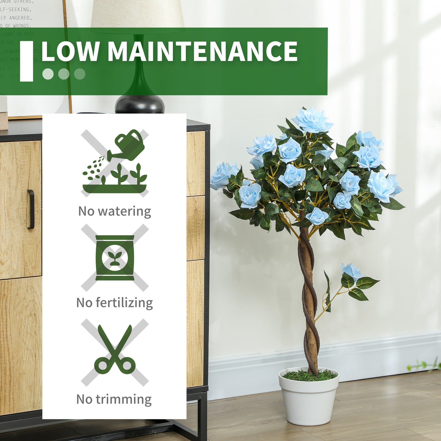 Outsunny Set of 2 Artificial Plants White Rose Floral in Pot, Fake Plants for Home Indoor Outdoor Decor, 90cm, Light Blue