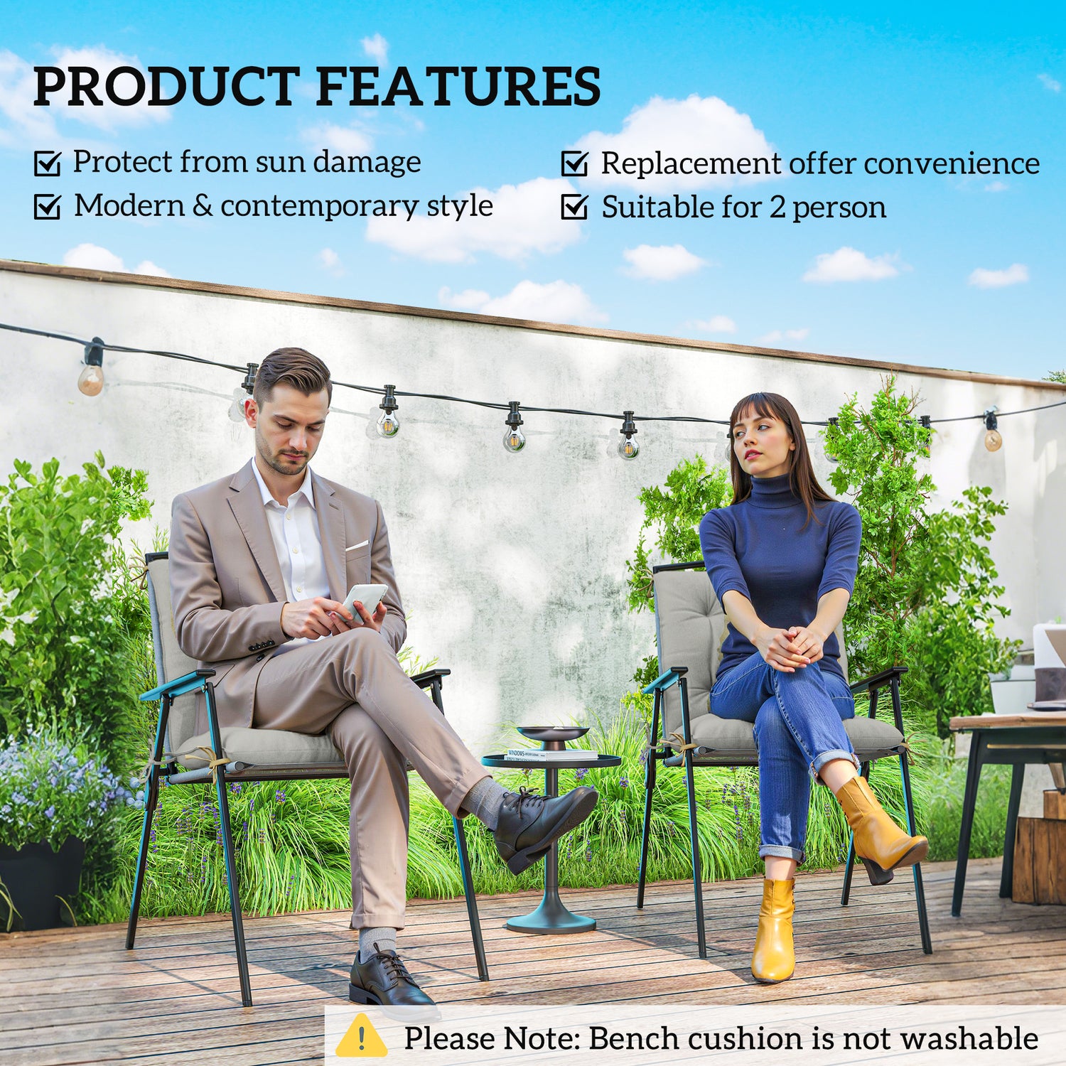 Outsunny Set of 2 Garden Chair Cushions with Backrest for Sunbeds, Rocking Chairs, Loungers, Indoor/Outdoor Use, Light Grey