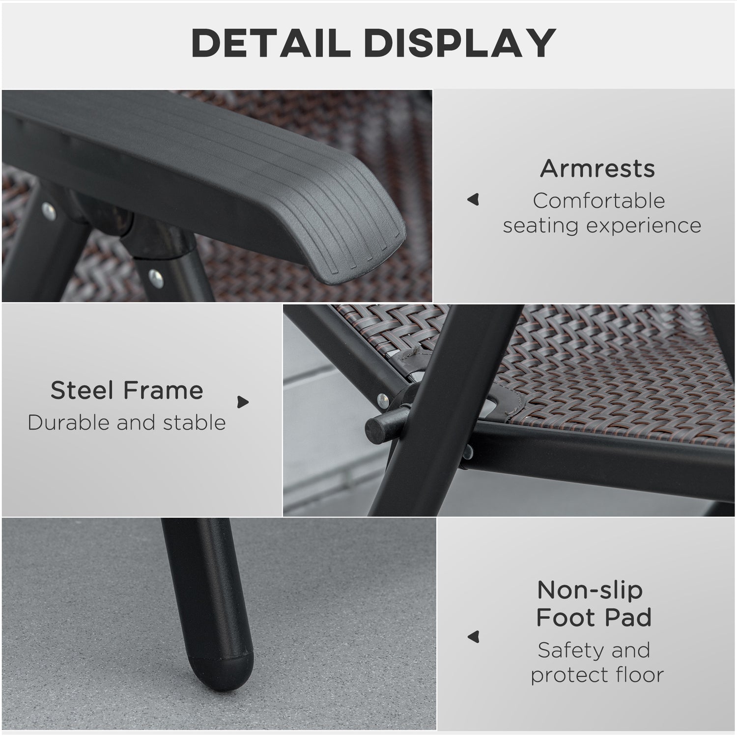 Outsunny Set of 2 Outdoor Wicker Folding Chairs, Patio PE Rattan Dining Armrests Chair set with Adjustable Backrest, for Outdoors, Camping, Red Brown