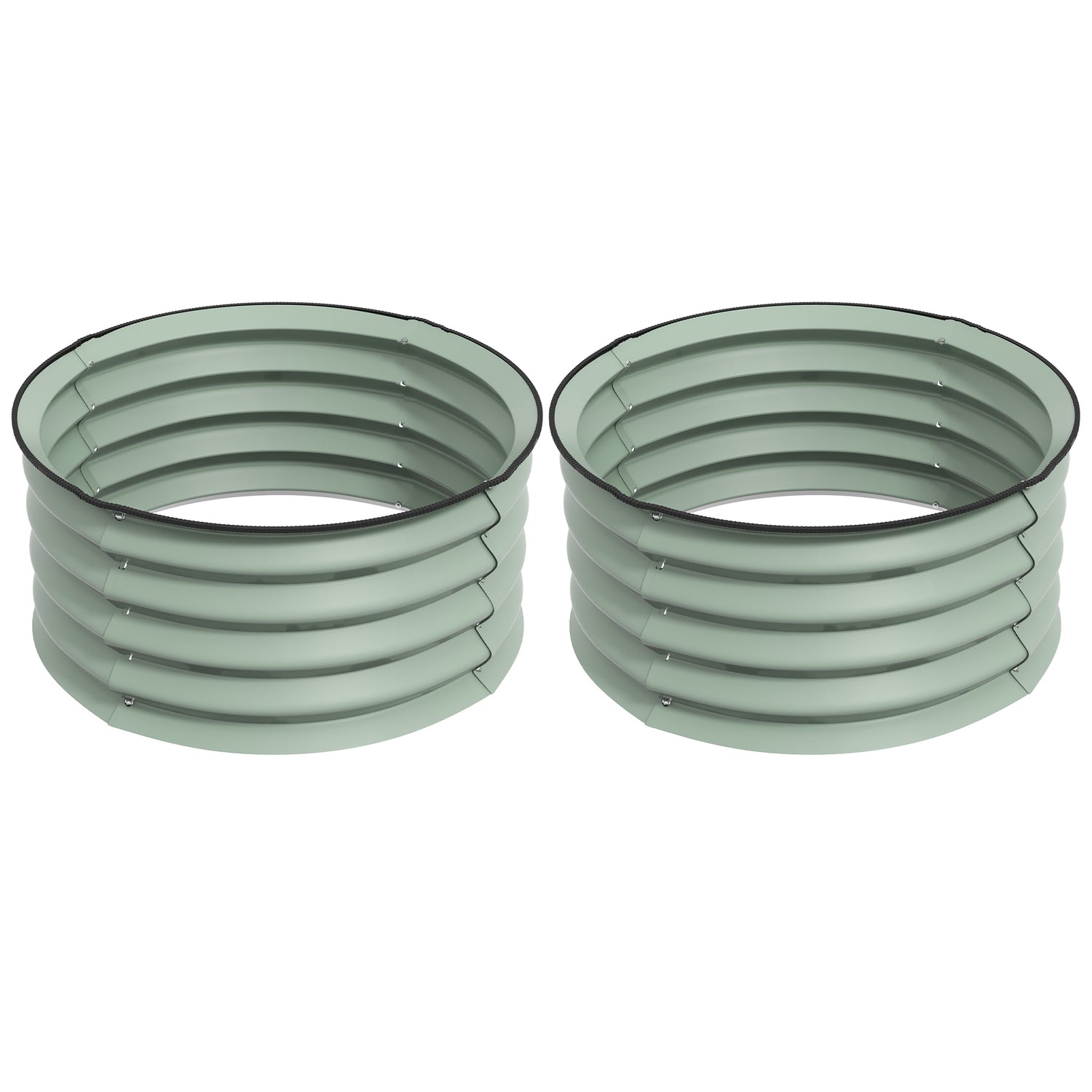 Outsunny Set of 2 Raised Garden Bed Metal Planter Box with Safety Edging Easytoassemble Stock Tank Green