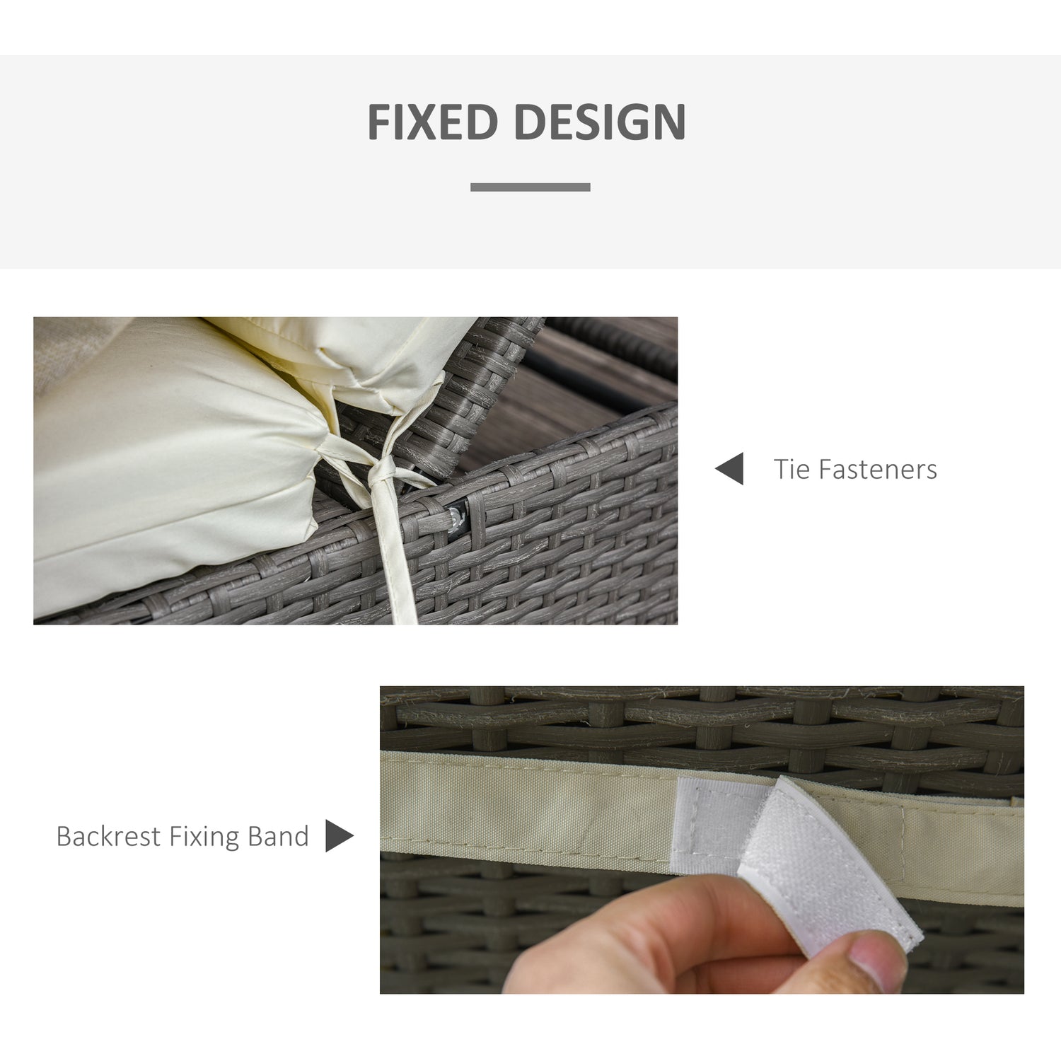 - Tie fastenings and fixing band to keep cushion in place