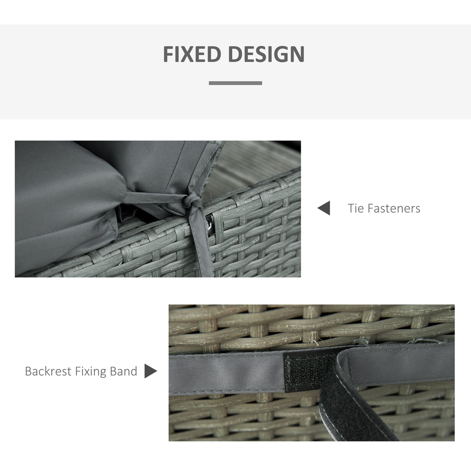 - Tie fastenings and fixing band to keep cushion in place