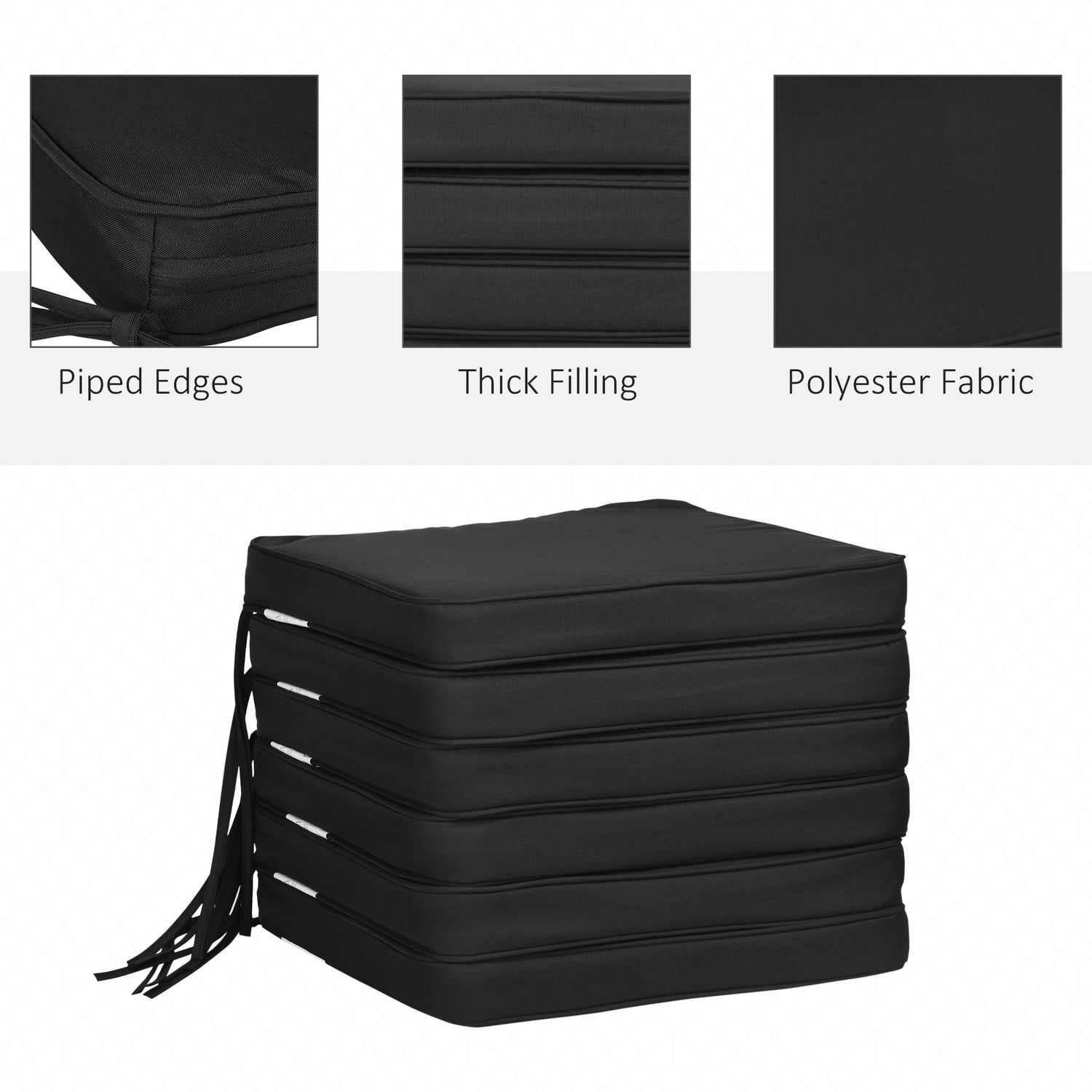 Outsunny Set of 6 Chair Cushion Seat Pads Dining Chair w/ Straps Indoor Outdoor Removable Tie On Garden Patio Black