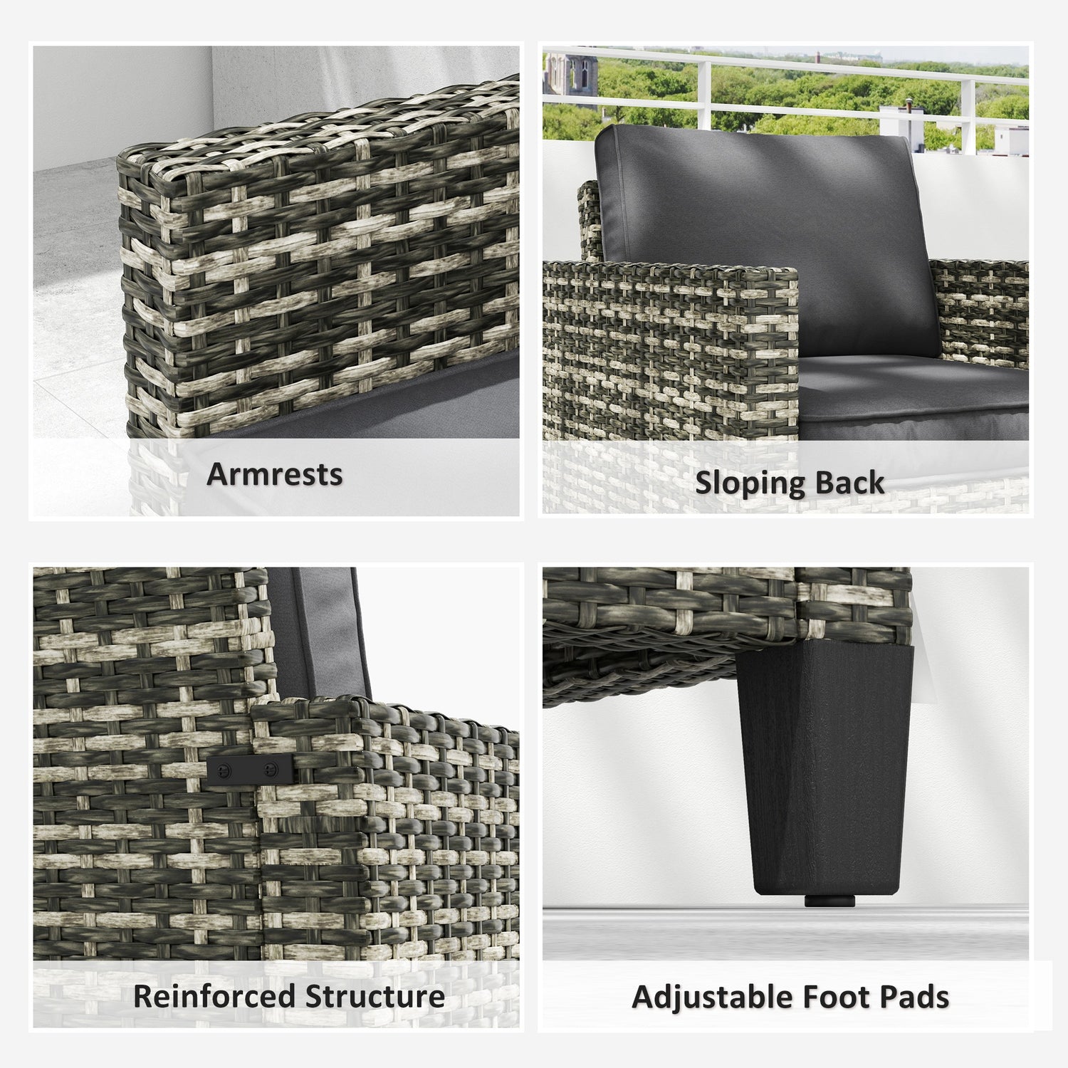 - Adjustable foot pads: A stable base, the garden rattan chair with tapered feet stands steady and balanced whenever and wherever you need.