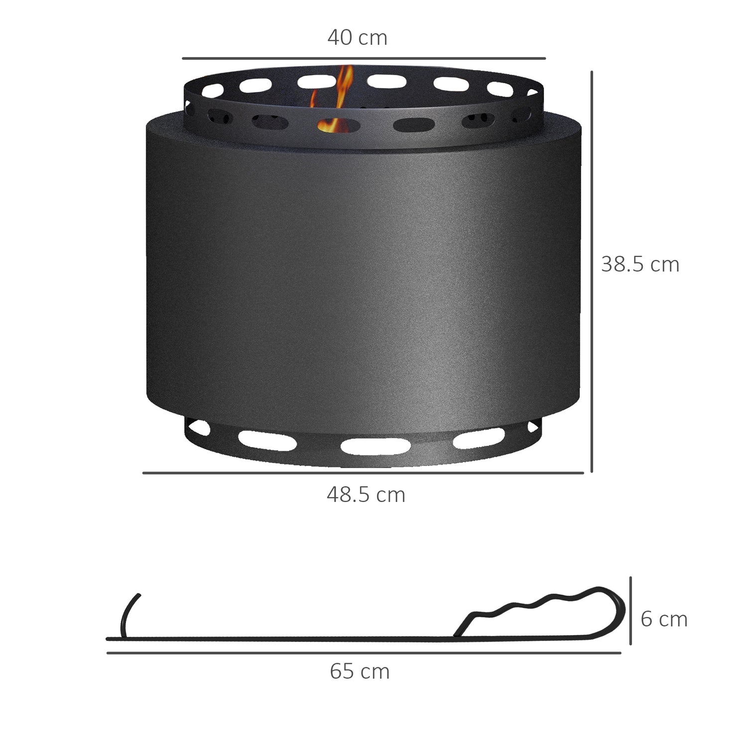 - Dimensions: 38.5H x Ø48.5cm. Inner: Ø40cm. Poker: 65Lcm.