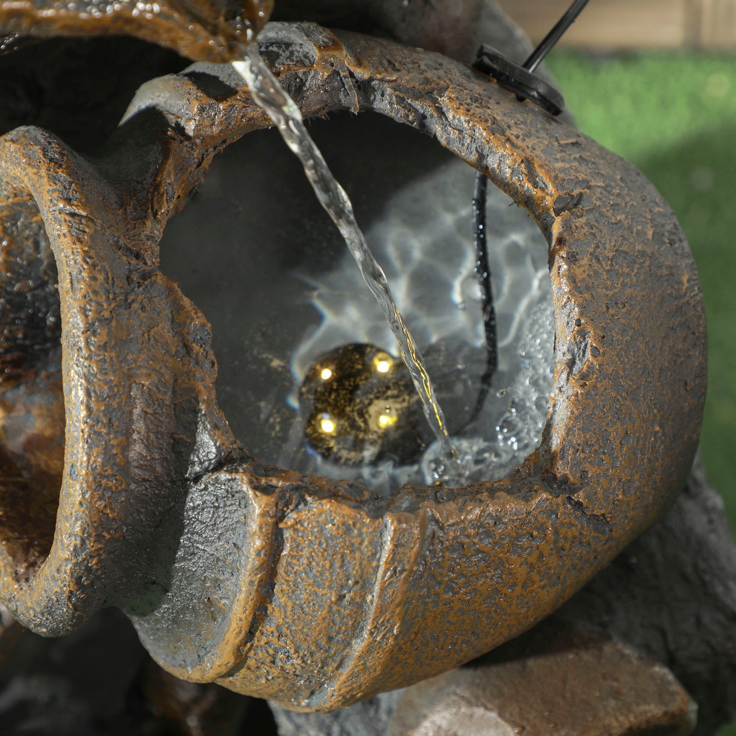 - Solar-powered: During daylight hours, this outdoor water feature operates using sunlight and simultaneously charges its battery, ensuring power availability for cloudy or nighttime usage.