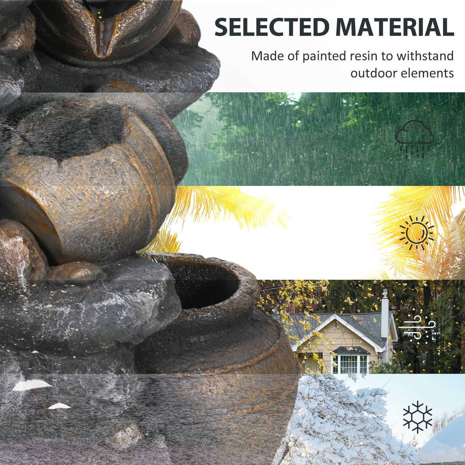 - Outdoor ready: Our garden waterfall is made of painted weather-resistant resin to withstand outdoor elements like sunburns, rain, wind and cold. Not easy to fade, lending years of brightness to your garden.