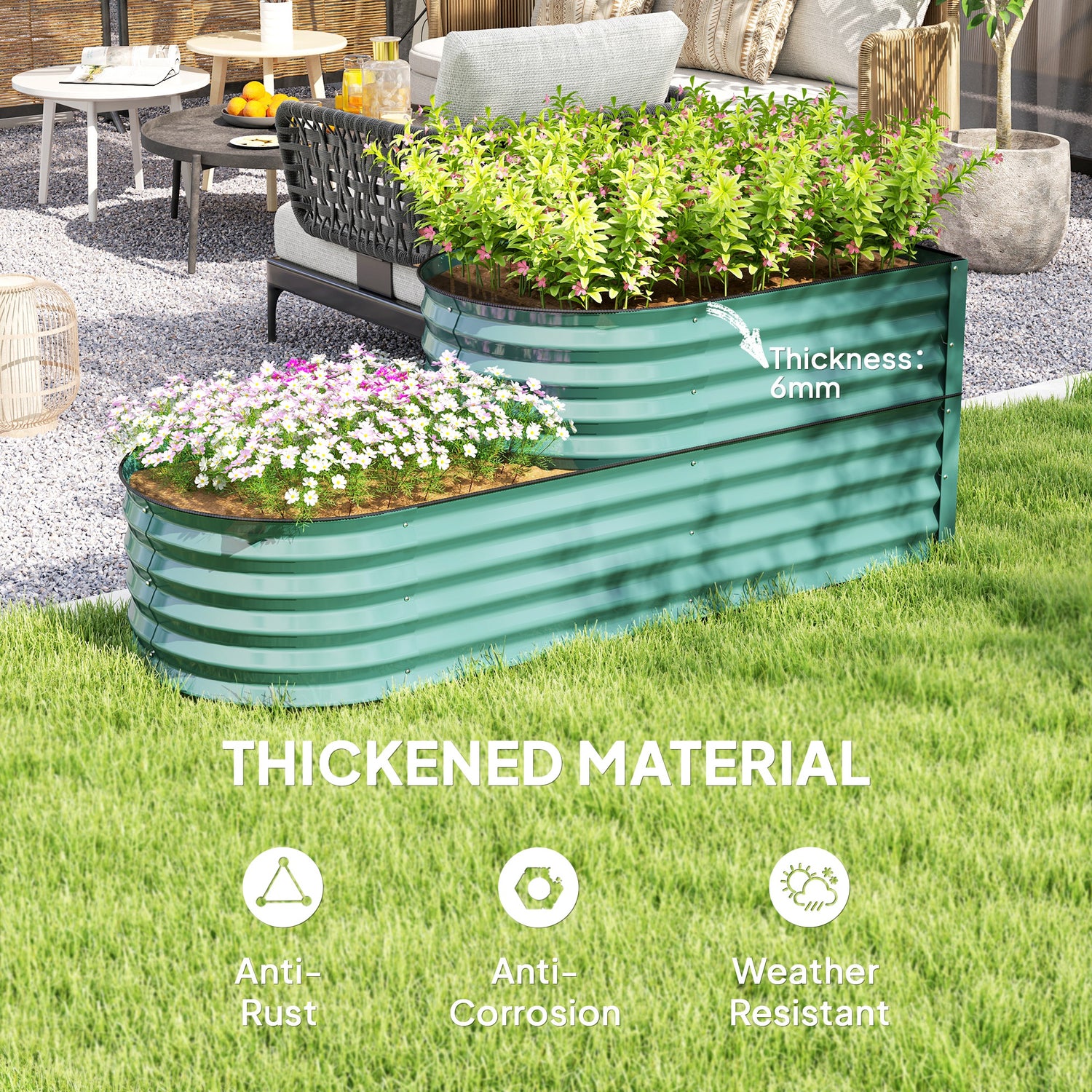 Outsunny Two-Tier Galvanised Steel Garden Planter - Dark Green