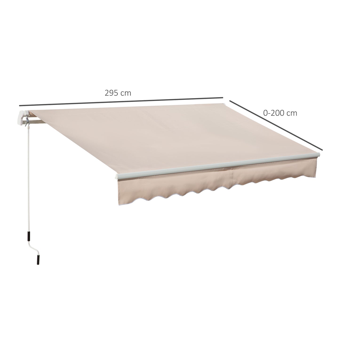 Outsunny Window Awning Canopy Garden Outdoor Shelter Patio Sun Shade UV Blocker Light Weight Aluminium Frame w/ Hand Crank 3 x 2m Beige for Door &