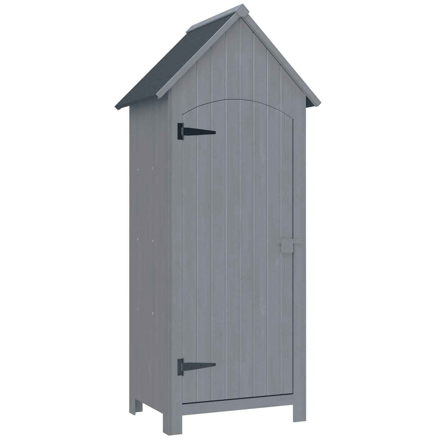 Outsunny Wooden Garden Storage Shed with 3 Shelves, Outdoor Tool Cabinet with Tilt Roof & Lockable Door, 77.5 x 54.2 x 179.5 cm, Grey