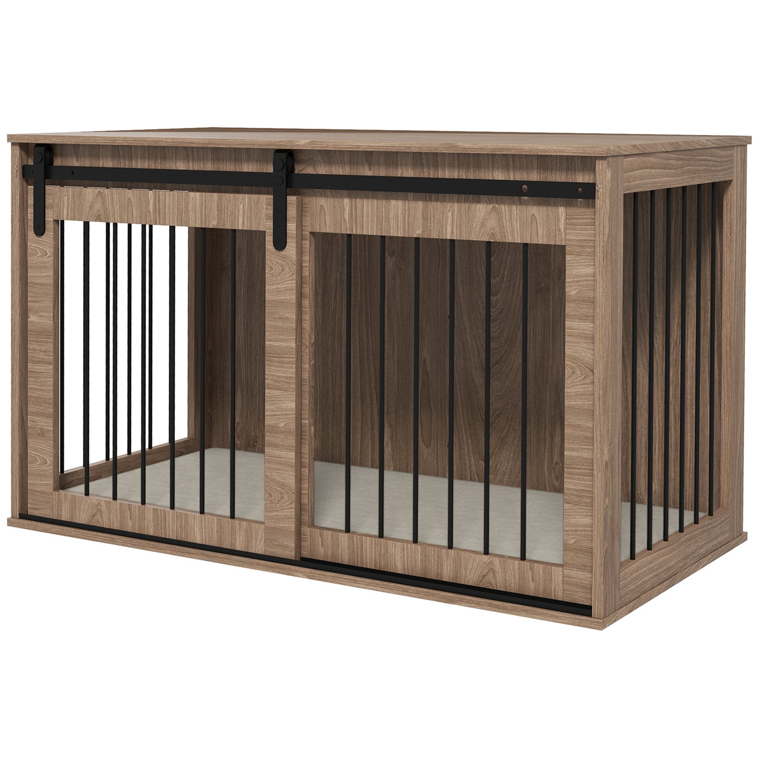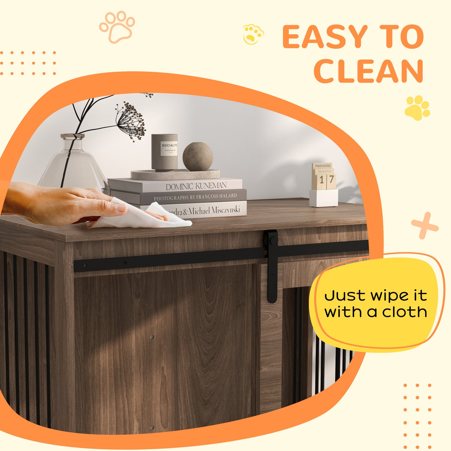 - Stylish ventilation: The chestnut wood effect and spaced bars on three sides not only enhance your home decor but also keep your pet's space cool and comfortable.