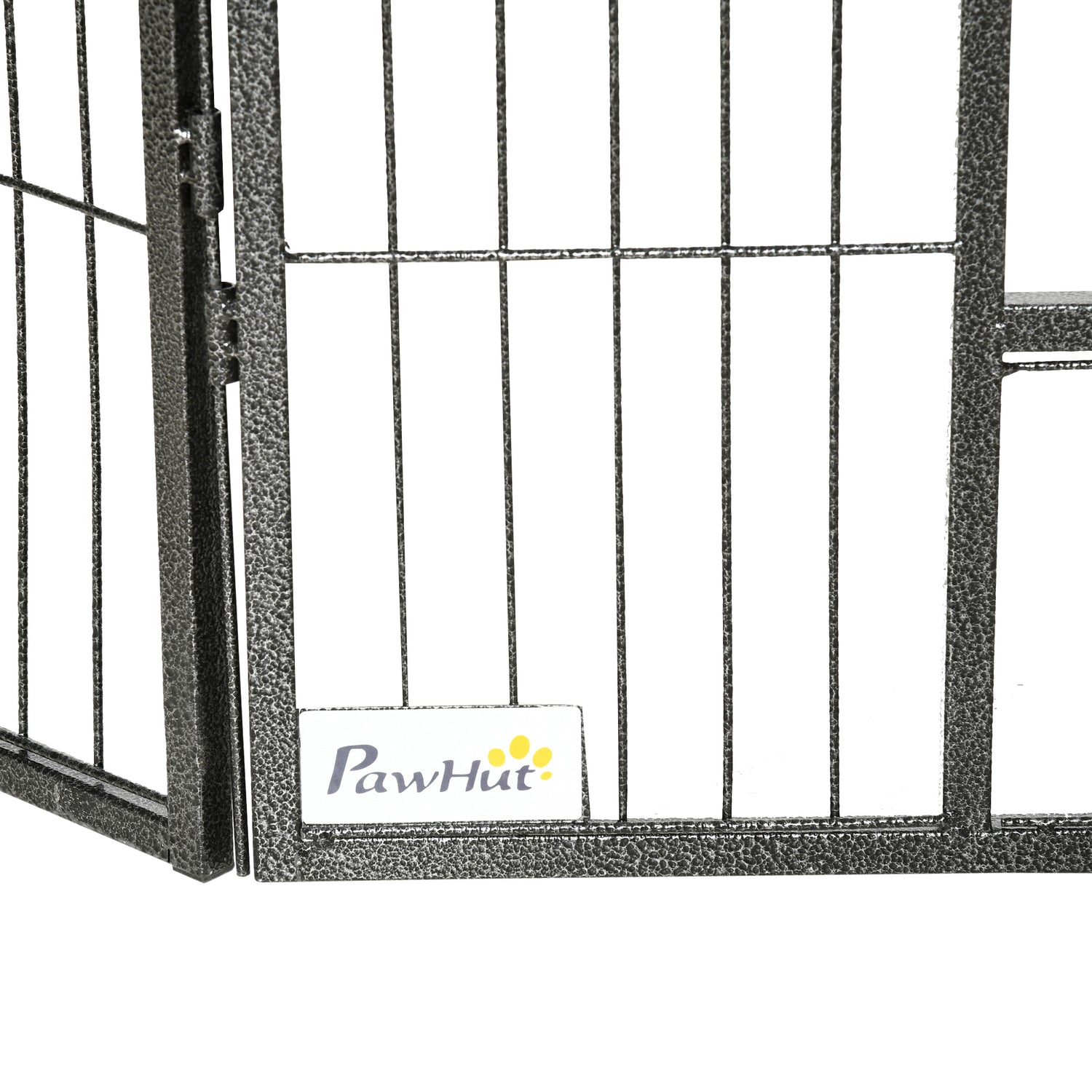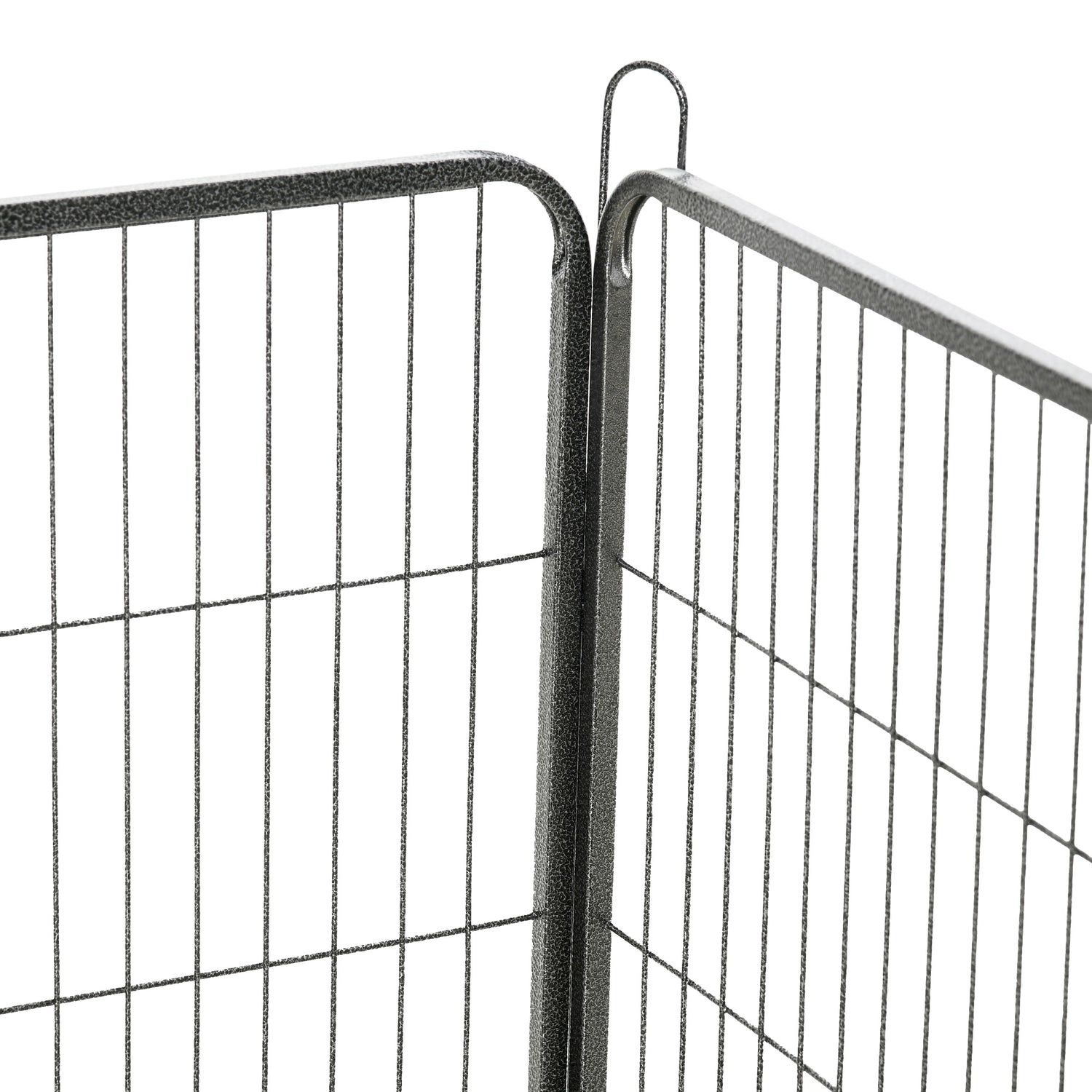 - Steel frame: A durable dog pen, ideal for indoor and outdoor use. Includes step-through doors for easy access. The locks keep pets securely inside when needed.
