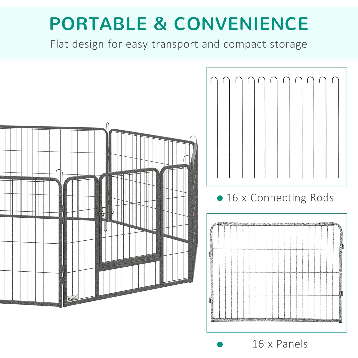 With this PawHut pet pen, pets have a safe space to be themselves, whilst giving you peace of mind. With 16 panels, it's flexible and spacious, providing lots of room to roam, play and relax – pets won't feel boxed in. Features ground stakes that go into the ground for stability, you'll set this playpen into different shapes to fit your layout, whether it's inside or outside. For pets, it's freedom and security, and for you, it's knowing they're safe and sound, with lots of space to enjoy.